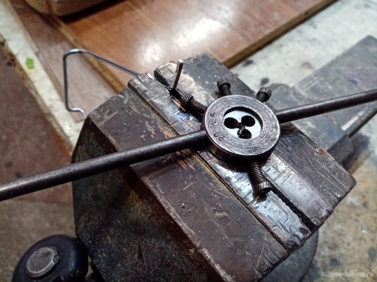 На концах стойки лыж нужно нарезать резьбу. В бой вступает лерка и смазка. Спустя некоторое время операция завершена. Резьба готова на двух концах. Примеряю стойки к корпусу и к лыжам. Примерки завершились положительно. Следующая операция, изготовление элементов крепления шасси к фюзеляжу.