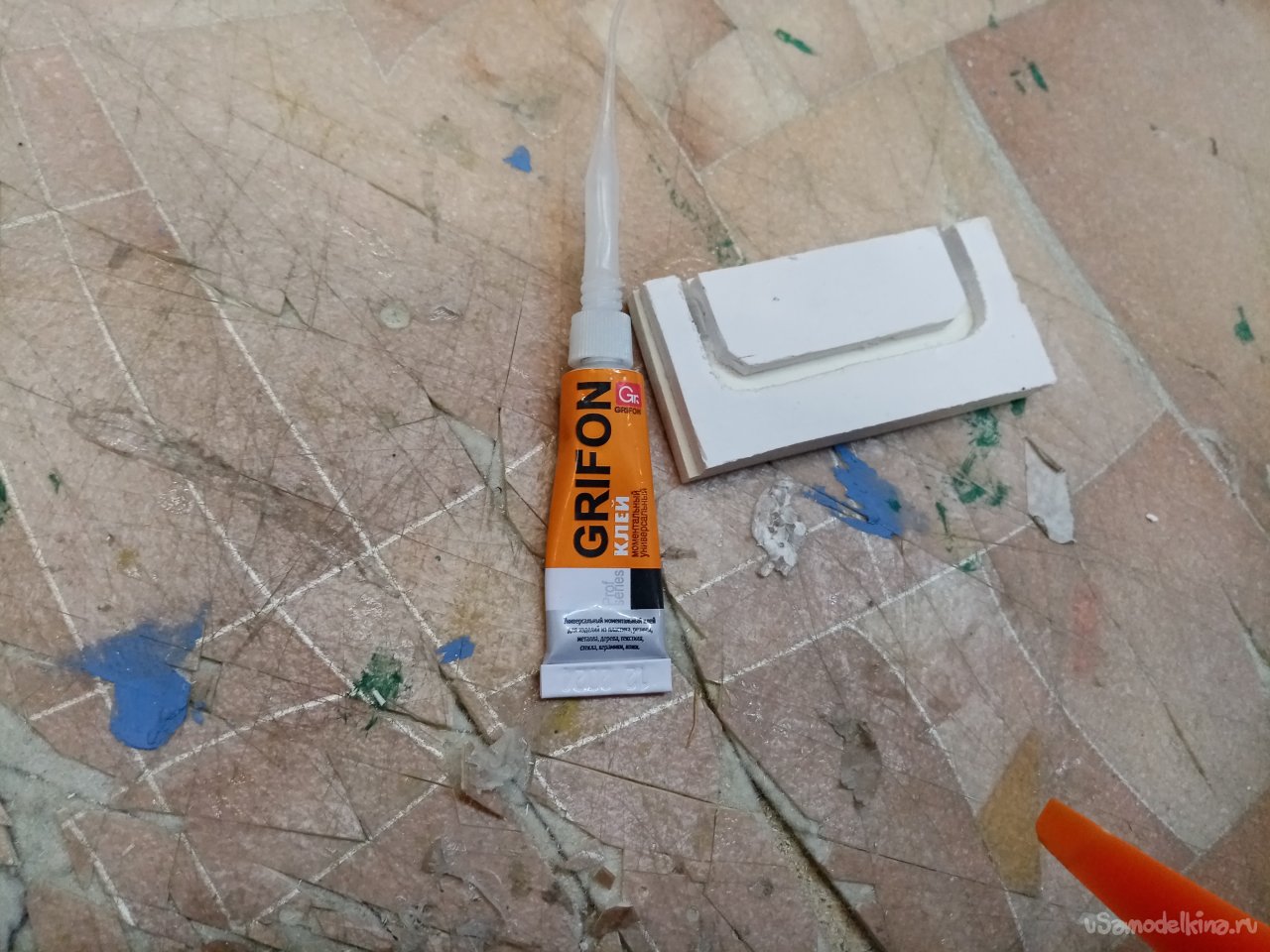 После застывания клея проливаю детали по шву с двух сторон. Применяю в работе мой любимый циакрин GRIFON, с трубочкой. Благодаря хорошей текучести циакрин отлично растекается по шву. Лыжи готовы.