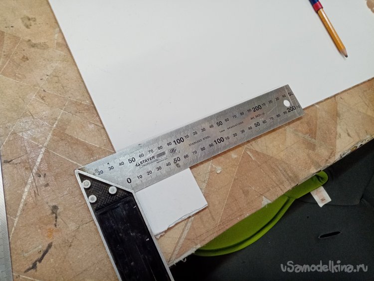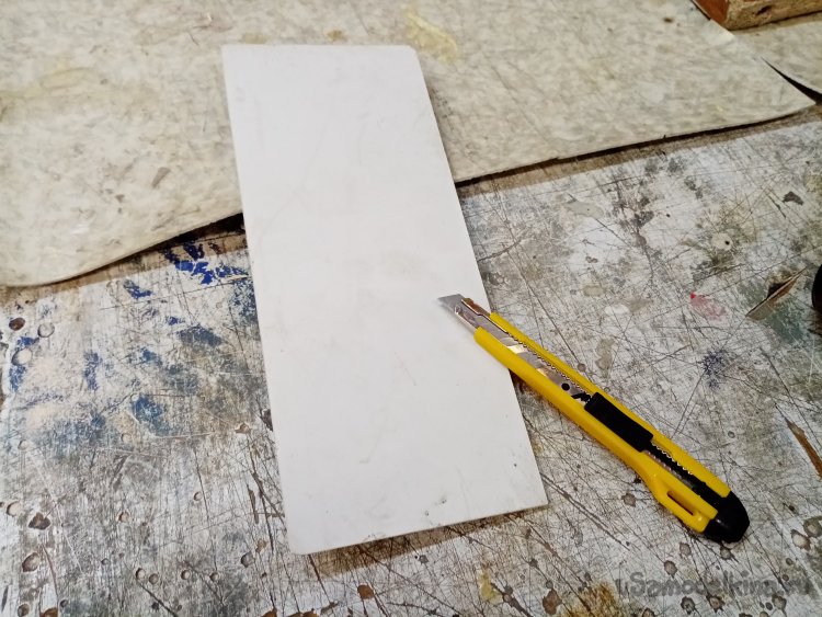 Для этой цели выбираю пластик белого цвета толщиной в 4 мм. От целого куска отрезаю парочку прямоугольников по размеру.