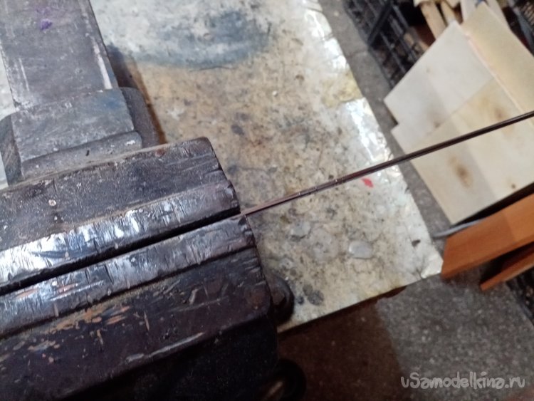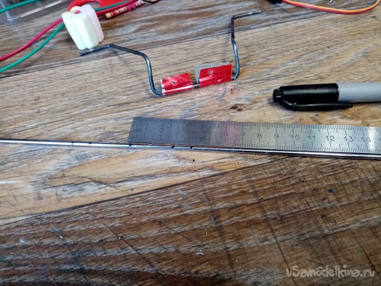 Нужно изготовить крепления к корпусу. Для этой цели нашелся прутик из хромированного железа достаточной длины. Размечаю нужные размеры при помощи фломастера. Ориентируюсь по старому образцу.