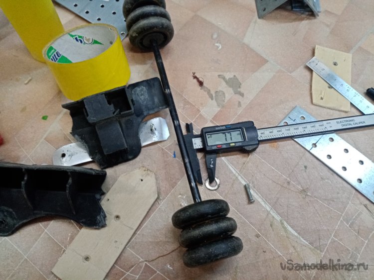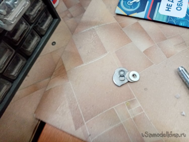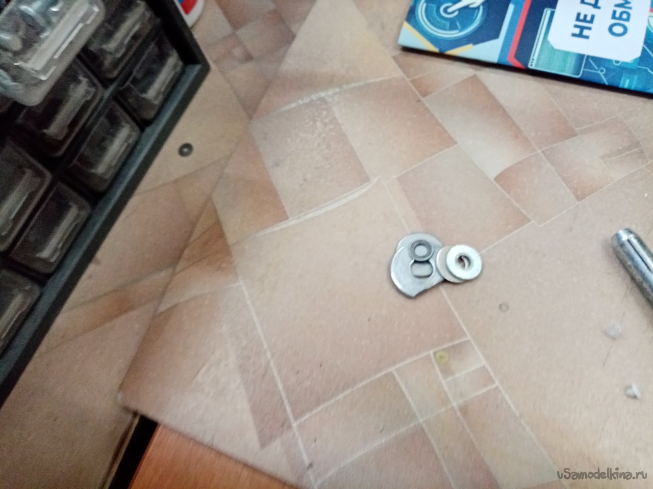 Болтики крепления остались от сломанной конструкции. Нужно найти парочку шайбочек для колесиков. Которые планирую проложить между металлической загогулиной и колесами.
