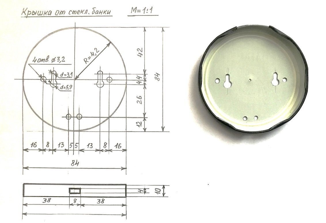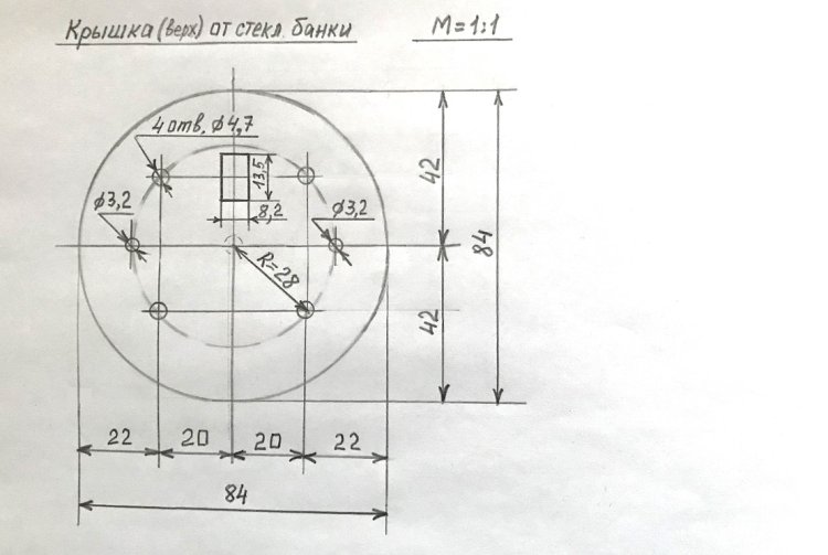 Эскиз верхней крышки от стеклянной банки диаметром 84 мм.