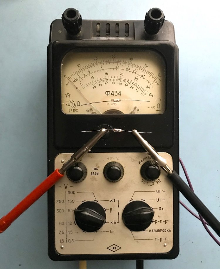 Проверка диодов на ток утечки. Как оказалось, напрасная операция: все проверенные германиевые (!) диоды за 40 лет хранения свои параметры не потеряли (обратный ток не увеличился).