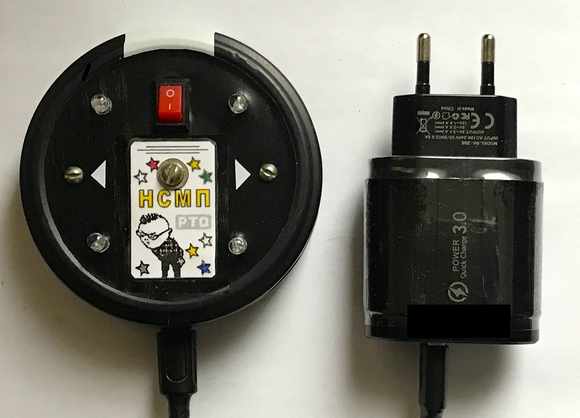 3). ЗУ-БП (Зарядное устройство – блок питания с выходным напряжением +5 Вольт) с кабелем. На одном конце кабеля должен быть разъём типа USB-A – для ЗУ-БП, а на другом Micro-USB – для подключения к НСМП. При такой комплектации в корпусе НСМП можно установить миниатюрную макетную плату «Адаптер micro USB гнездо». В магазине MCU Store она имеет артикул 00289 и стоит всего 11 рублей.