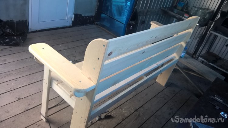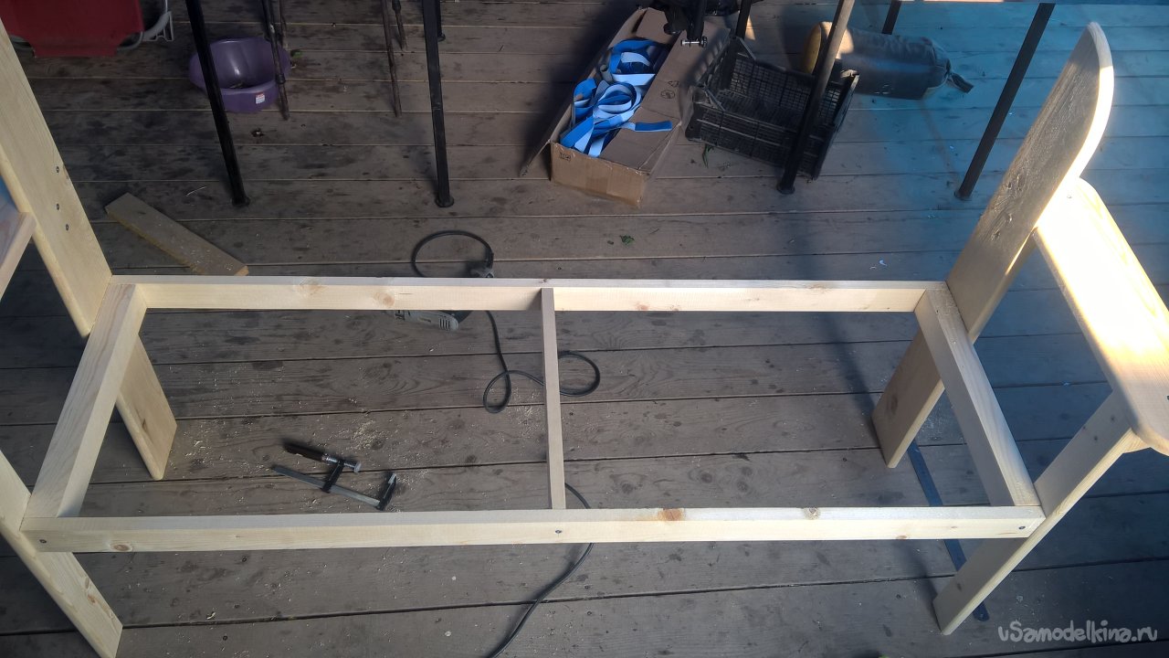 на заднюю часть каркаса, формируя удобную и надежную опору для спины. Убедившись, что все доски расположены ровно и надежно закреплены, я перешел к следующему этапу.