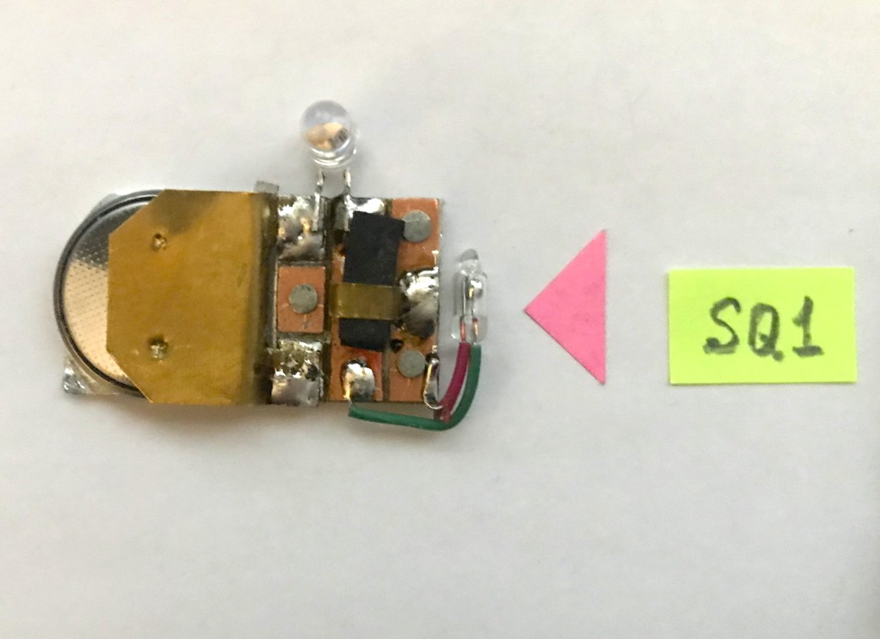 2). Наступать ногой или ставить на него тяжёлые предметы. Погнутся выводы HL1, хотя раздавить SQ1 вряд ли удастся (он «в домике» и почти полностью защищён суммарной толщиной основания и платы).