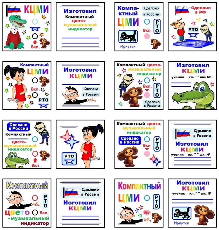 3). На некоторых задних этикетках изображение Чебурашки можно заменить фотографией изготовителя индикатора. Более того, знакомясь с программой «Paint», можно объявить конкурс среди кружковцев на разработку лучших этикеток для КЦМИ.