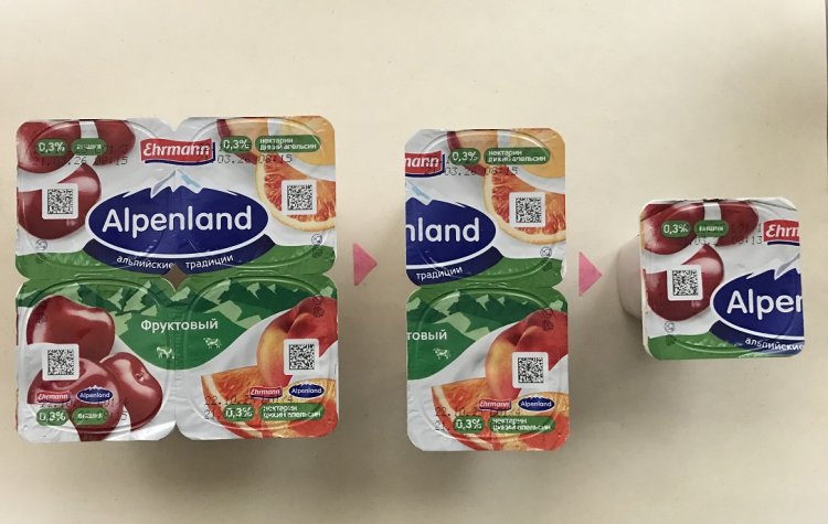 Содержимое упаковки уничтожается (съедается). Этикетка легко отклеивается в горячей воде. Нагретый в воде клей также легко стирается, например, кусочком туалетной бумаги или губкой.