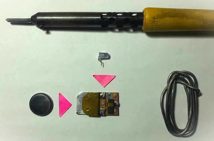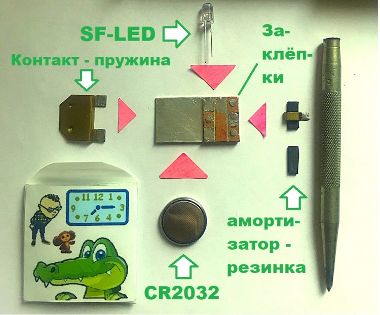 2). Покупные радиодетали не самые дешёвые: 5 рублей (за SF-LED) + 14 … 97 рублей (за CR2032) + 18 … 30 рублей (датчик наклона 101F3MM).