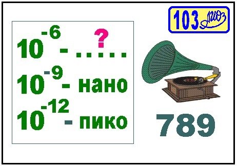 Ребус РРТ № 103 из статьи СПГ (Сигнализатор превышения громкости). Ответ: микрофон [микро(одна миллионная доля единицы), граммофон(789)].