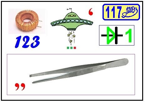 Ребус РРТ № 117 из статьи УАМП (Устройство автоматического многократного проигрывания). Ответ: дрон «Ланцет» [дроссель(123), НЛО, анод(1), пинцет].