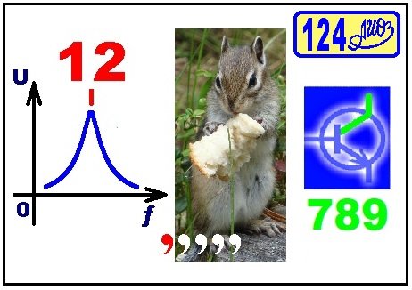 Ребус РРТ № 124 из статьи УДКП (Устройство дозированного кормления птиц). Ответ: редуктор [резонанс(12), бурундук, коллектор(789)].