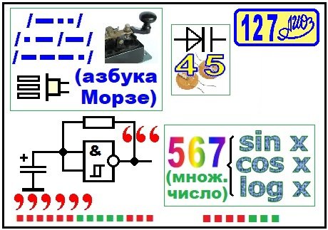 Ребус РРТ № 151. Логический элемент 2ИЛИ [круглогубцы(567), ический(азб. Морзе), эмиттер(1), клемма, сегмент, «д» в «а», стабилитрон].