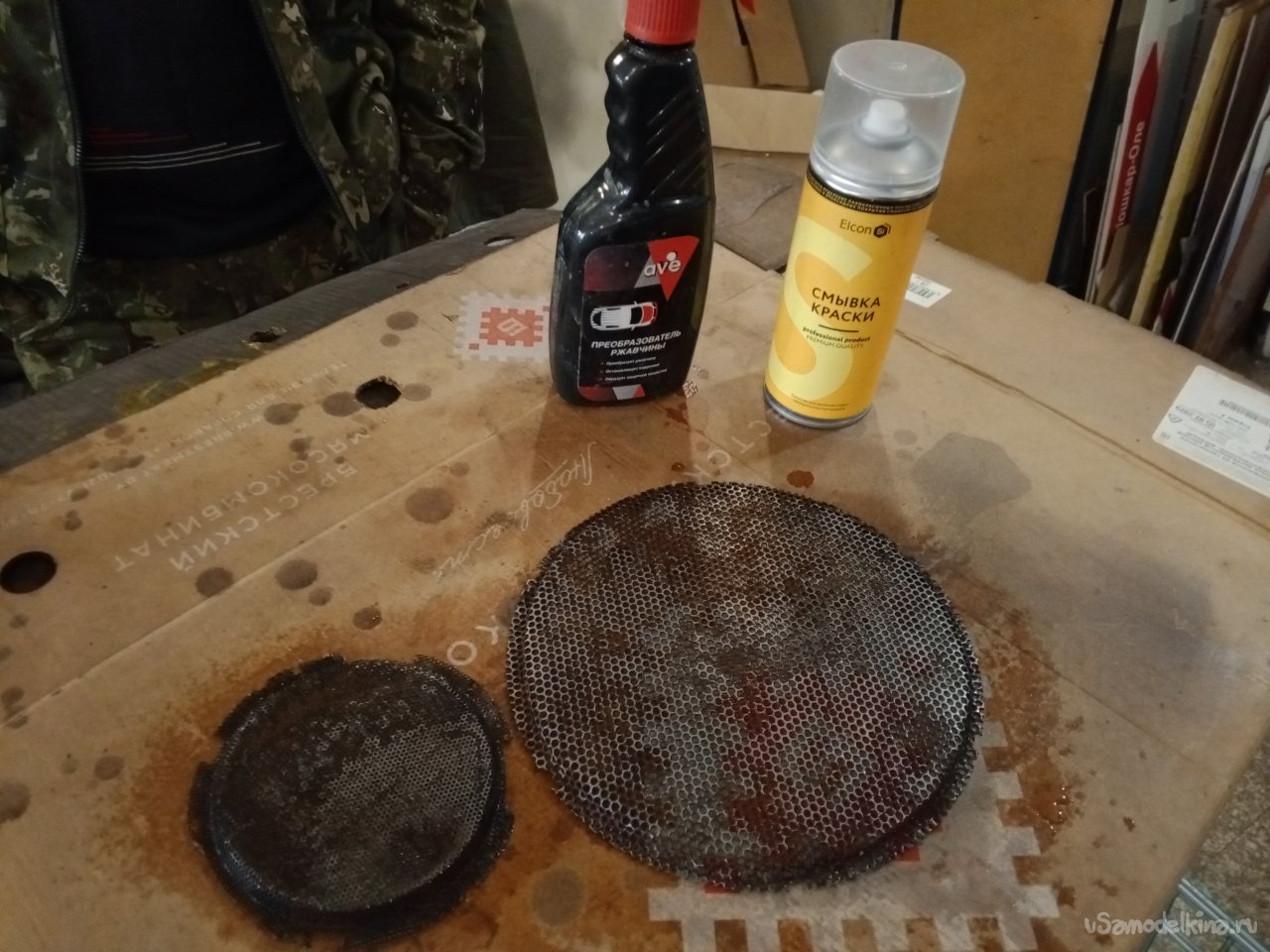 Ржавые металлические сетки обработал очистителем и средством, для снятия краски, в несколько заходов.