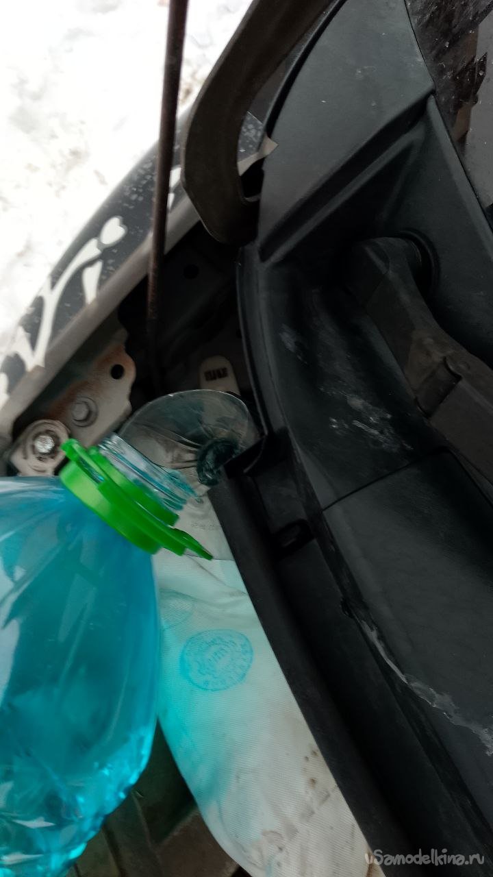 Всем доброго дня, сегодня будем улучшать и упрощать процесс залива незамерзающей жидкости в автомобиль. Машина непростая, Daihatsu Tanto, кей-кар. Всё под капотом миниатюрное и игрушечное, и заливать жижу в бачок омывателя неудобно. Более того, дядя-конструктор как-то перемудрил с системой трубочек, и когда наливаешь жидкость «от души», как в обычный автомобиль, она не успевает утекать в бачок, а разливается вокруг. Так что приходится тренировать нервную систему и заставлять себя не торопиться в этом процессе. Особенно это напрягает зимой и с ветром и снегопадом.
