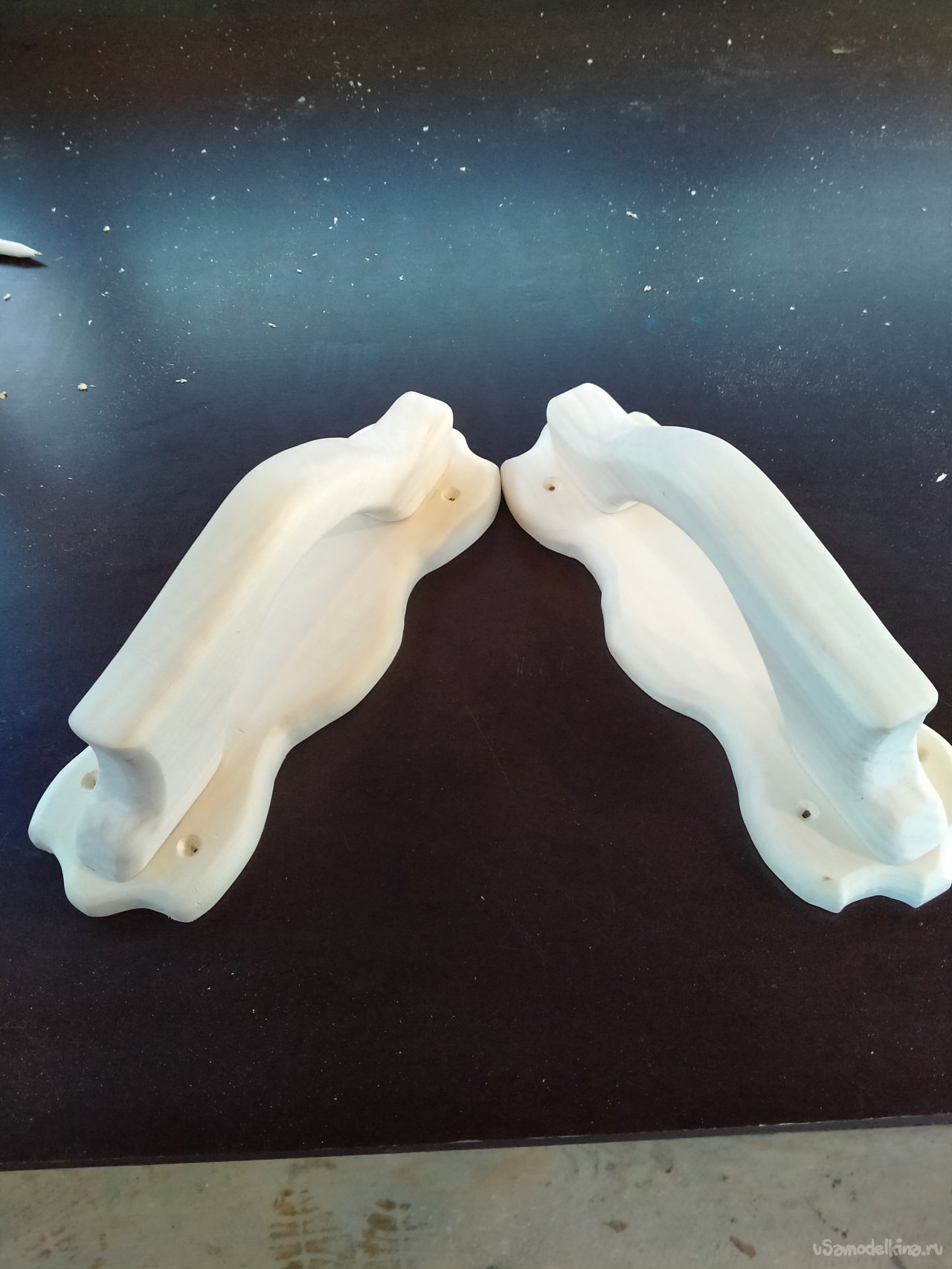 Если фрезеровка дала форму, то шлифовка подарила душу. Я начал с абразива зернистостьюP80 на орбитальной машинке, чтобы снять все следы от пилы и фрезы, сгладить возможные неровности. Это грубая, но необходимая работа. Затем, тщательно удалив пыль, я перешёл наP120, затем наP180. С каждым этапом поверхность становилась всё более однородной и гладкой. Финишную шлифовку я проводил вручную бумагойP240, а затемP320, уделяя особое внимание впадинам волн и выемке для ладони, куда машинка не могла добраться. В результате дерево обрело удивительную, шёлковую гладкость. Я несколько раз проводил рукой по поверхности, замечая, как текстура осины становится всё более явственной и приятной.