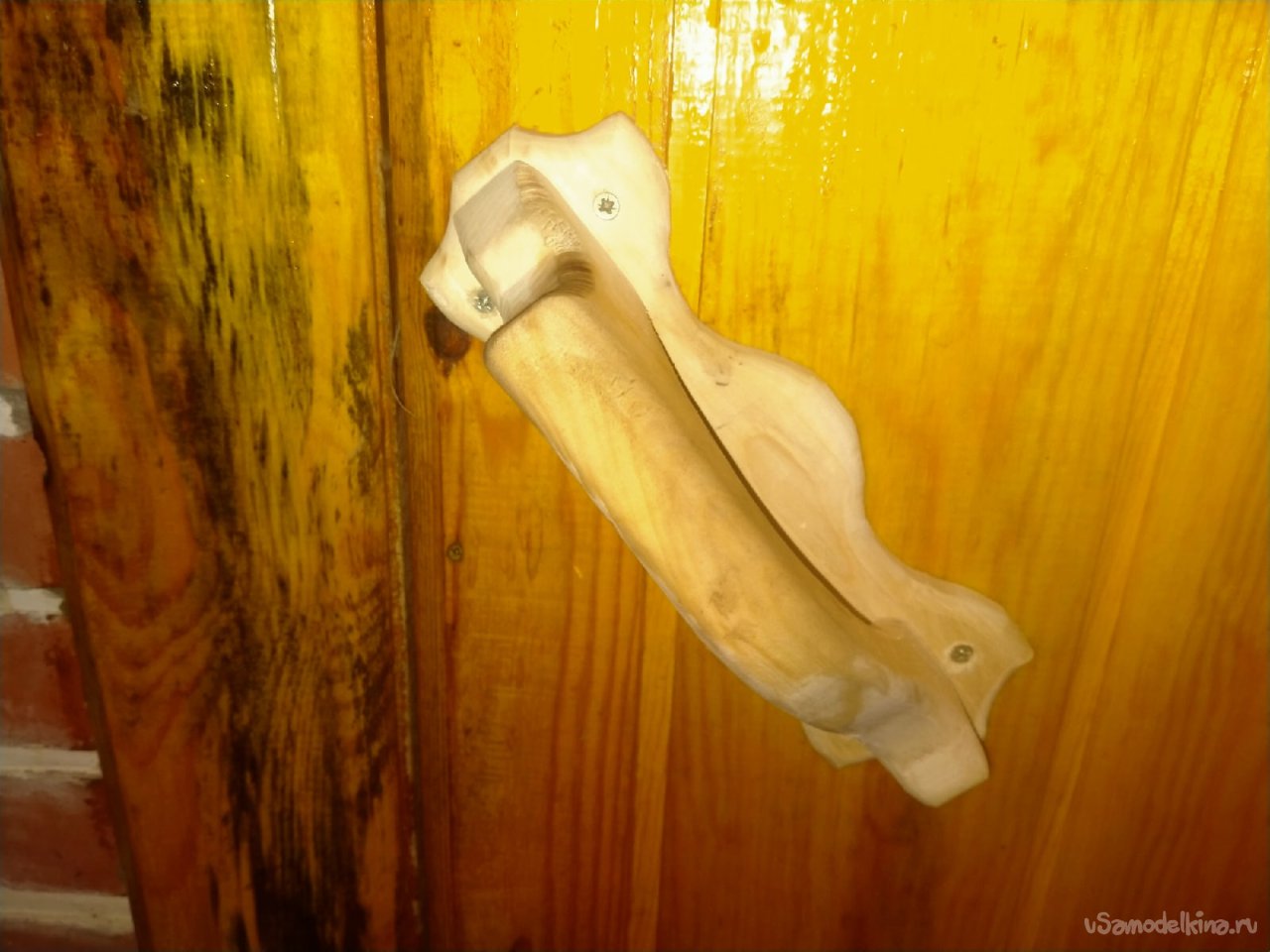 Моя деревянная ручка для бани с волнистыми краями: уют и самобытность в каждой детали.