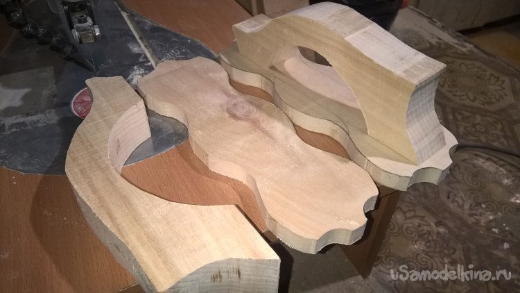 Здесь потребовалась уверенность и спокойная рука. Включив электролобзик, я аккуратно, без спешки, начал вести пилку по внешнему контуру. Важно было не «зарываться» в материал и вести линию чуть снаружи от разметки, оставляя небольшой припуск на последующую обработку фрезером. Затем настал черёд внутреннего контура — выемки для ладони. Эта операция требовала ещё большей точности, так как именно от неё зависел будущий комфорт. После выпиливания в моих руках лежала уже не доска, а грубый, но узнаваемый прообраз ручки.