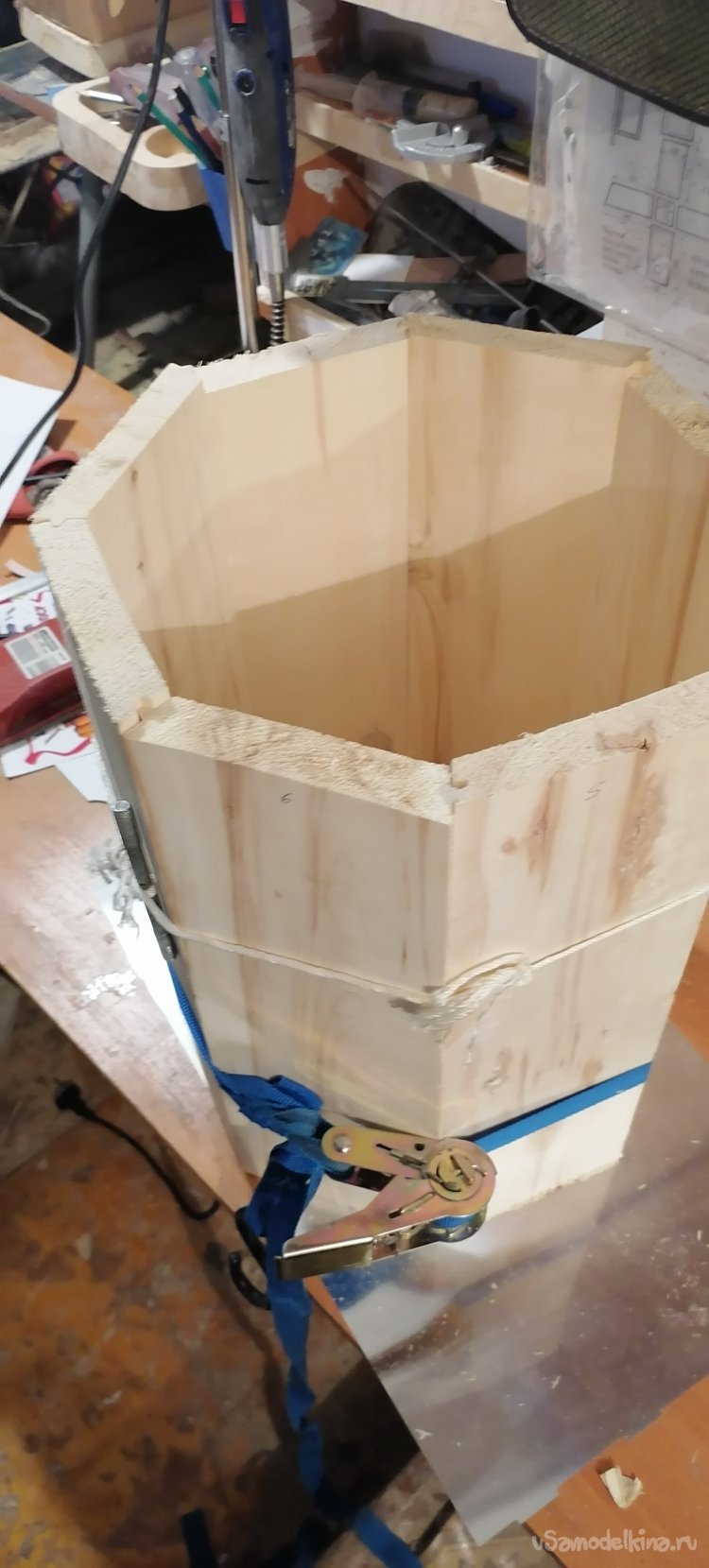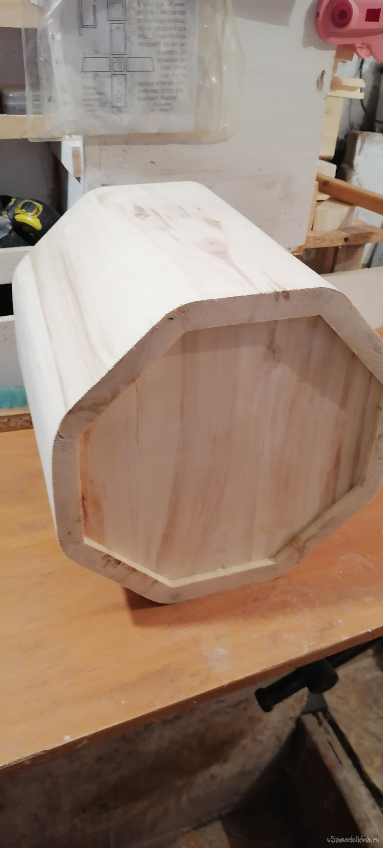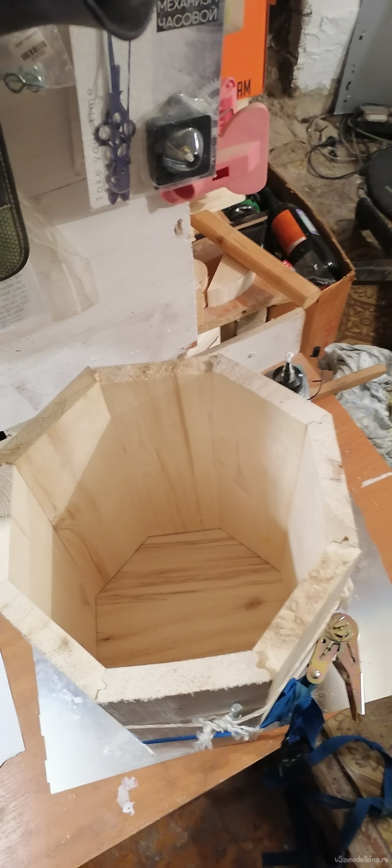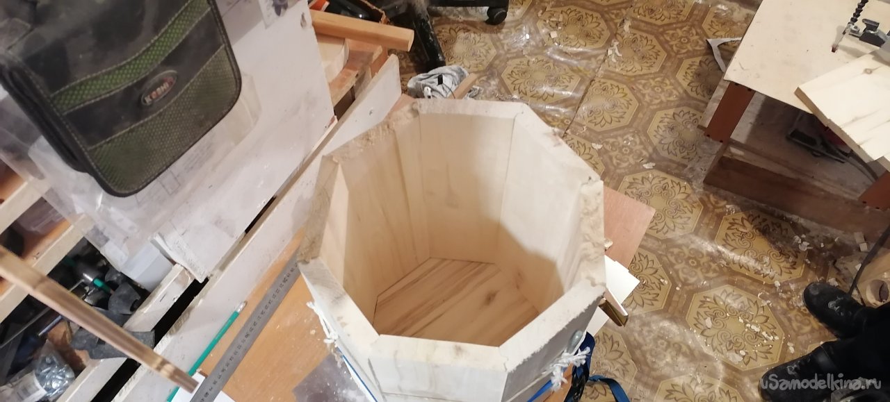 Когда боковые стенки были готовы, пришло время для дна. Я вырезал его из той же древесины, тщательно подогнав по размеру. Затем начался самый ответственный момент – сборка. Я промазывал каждый шип и паз клеем по дереву, аккуратно соединяя дощечки друг с другом и с дном. Важно было, чтобы не осталось ни малейшей щели, ведь от этого зависела герметичность всего изделия. Я работал не спеша, проверяя каждый стык, где-то подтачивая, где-то подгоняя, чтобы все легло идеально.