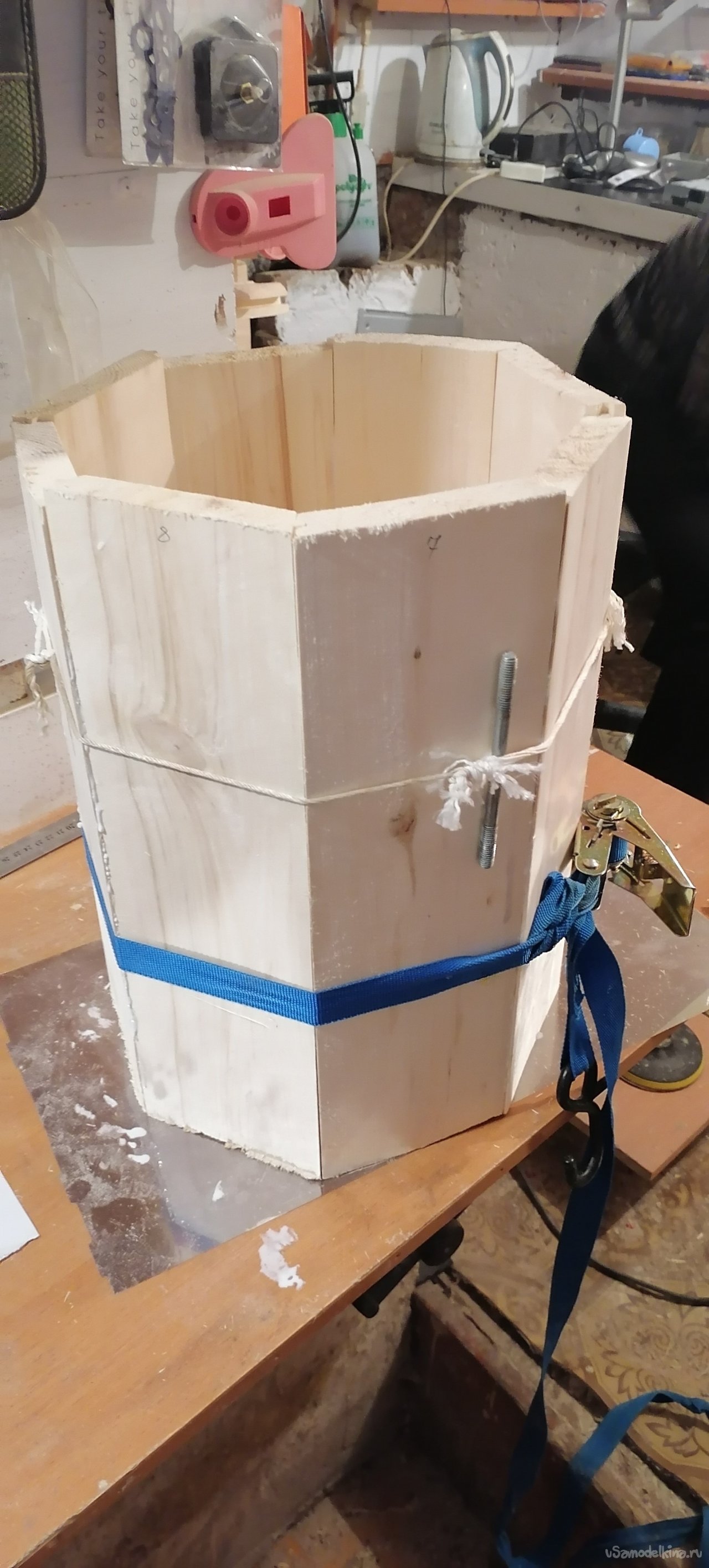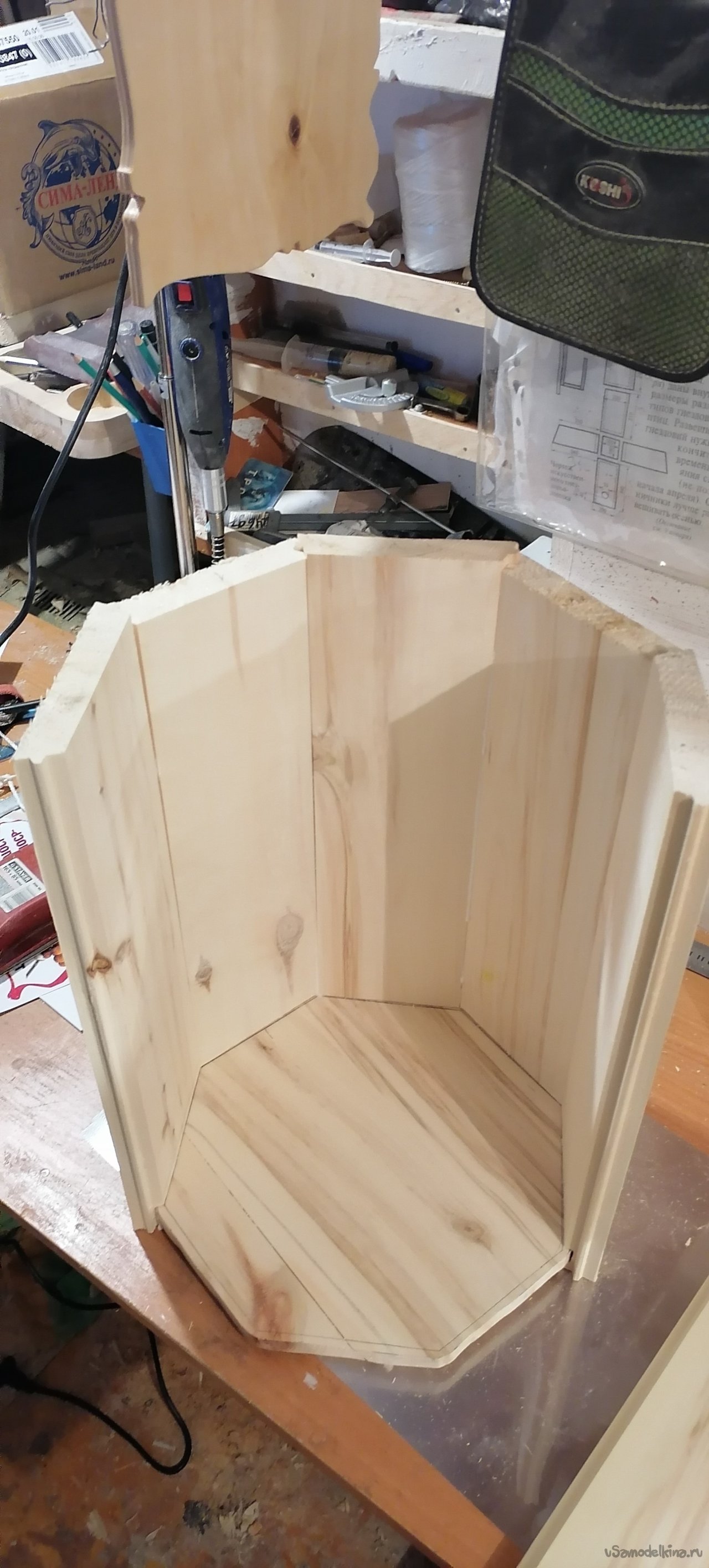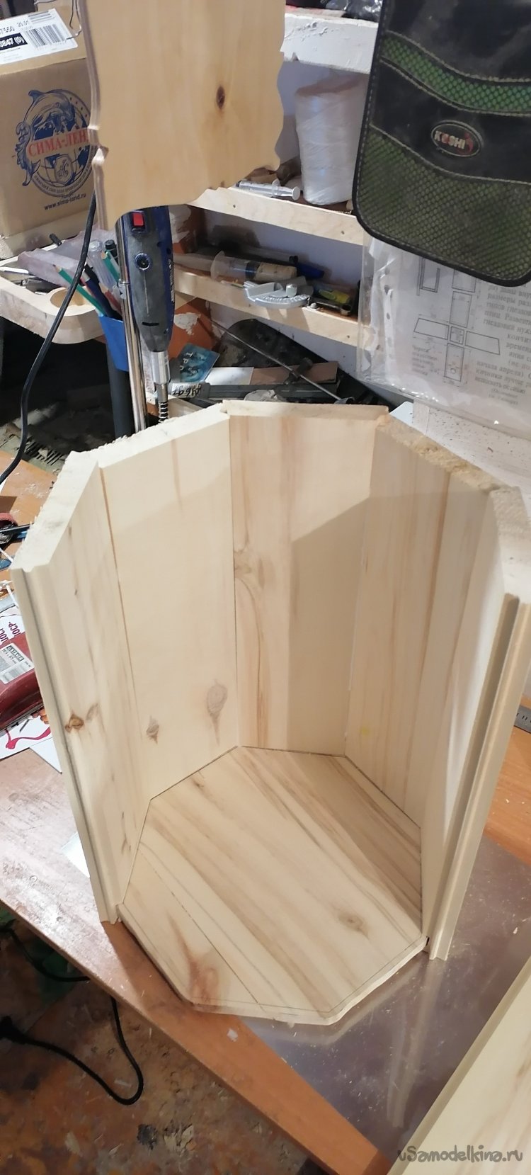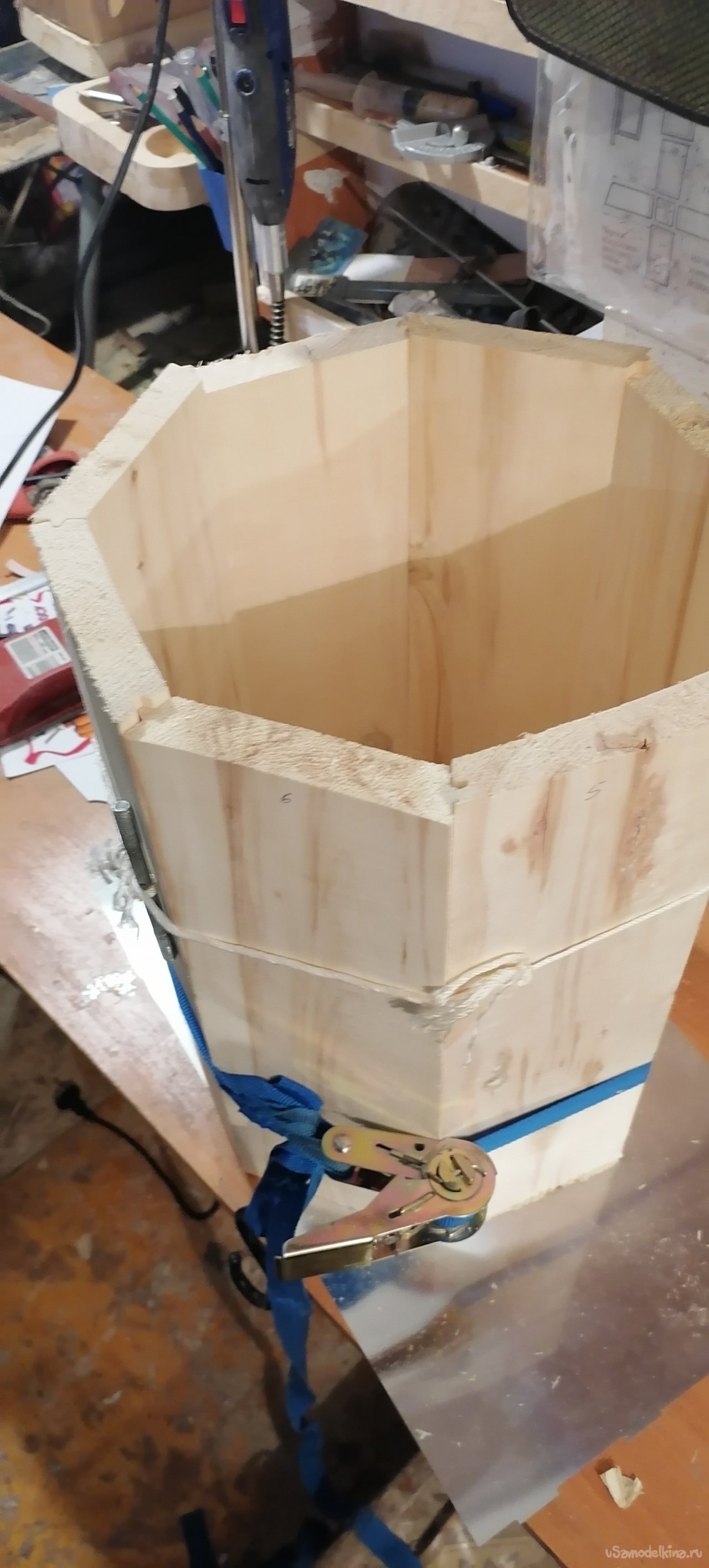 Когда боковые стенки были готовы, пришло время для дна. Я вырезал его из той же древесины, тщательно подогнав по размеру. Затем начался самый ответственный момент – сборка. Я промазывал каждый шип и паз клеем по дереву, аккуратно соединяя дощечки друг с другом и с дном. Важно было, чтобы не осталось ни малейшей щели, ведь от этого зависела герметичность всего изделия. Я работал не спеша, проверяя каждый стык, где-то подтачивая, где-то подгоняя, чтобы все легло идеально.