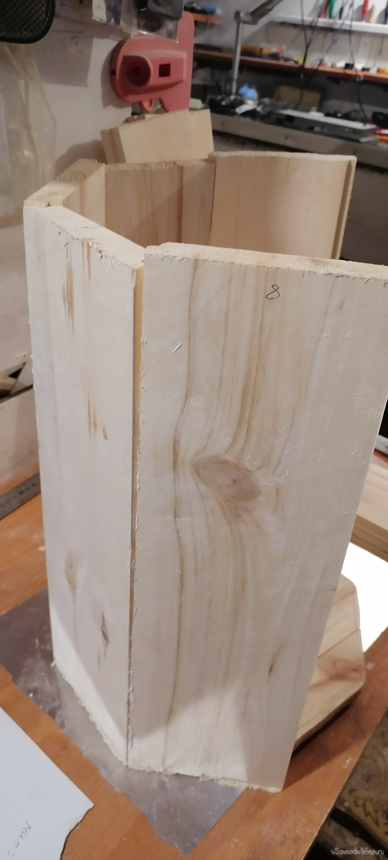 Первым делом я приступил к заготовке материала. Восемь досок, каждая длиной около 30 сантиметров и шириной чуть больше 10, стали основой моего будущего творения. Я люблю работать с деревом, чувствовать его текстуру, его запах. Это своего рода медитация, когда руки сами знают, что делать, а голова освобождается от суеты.