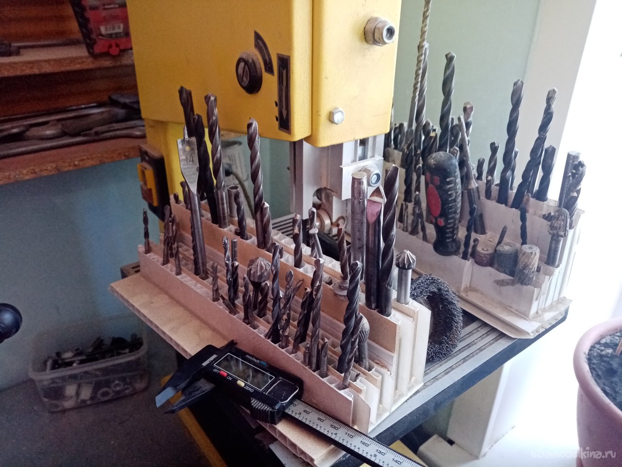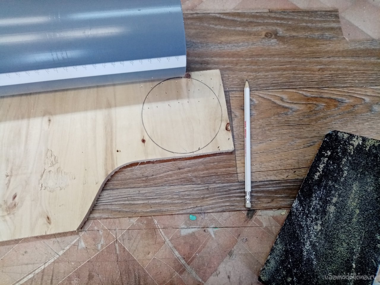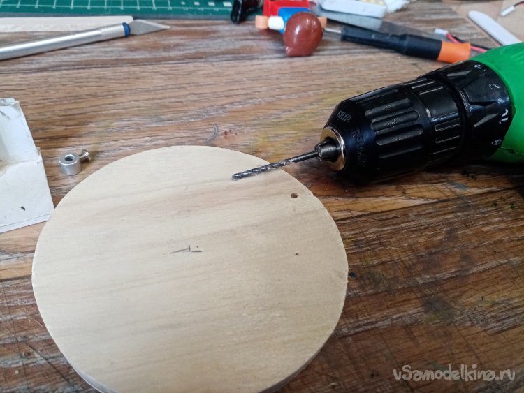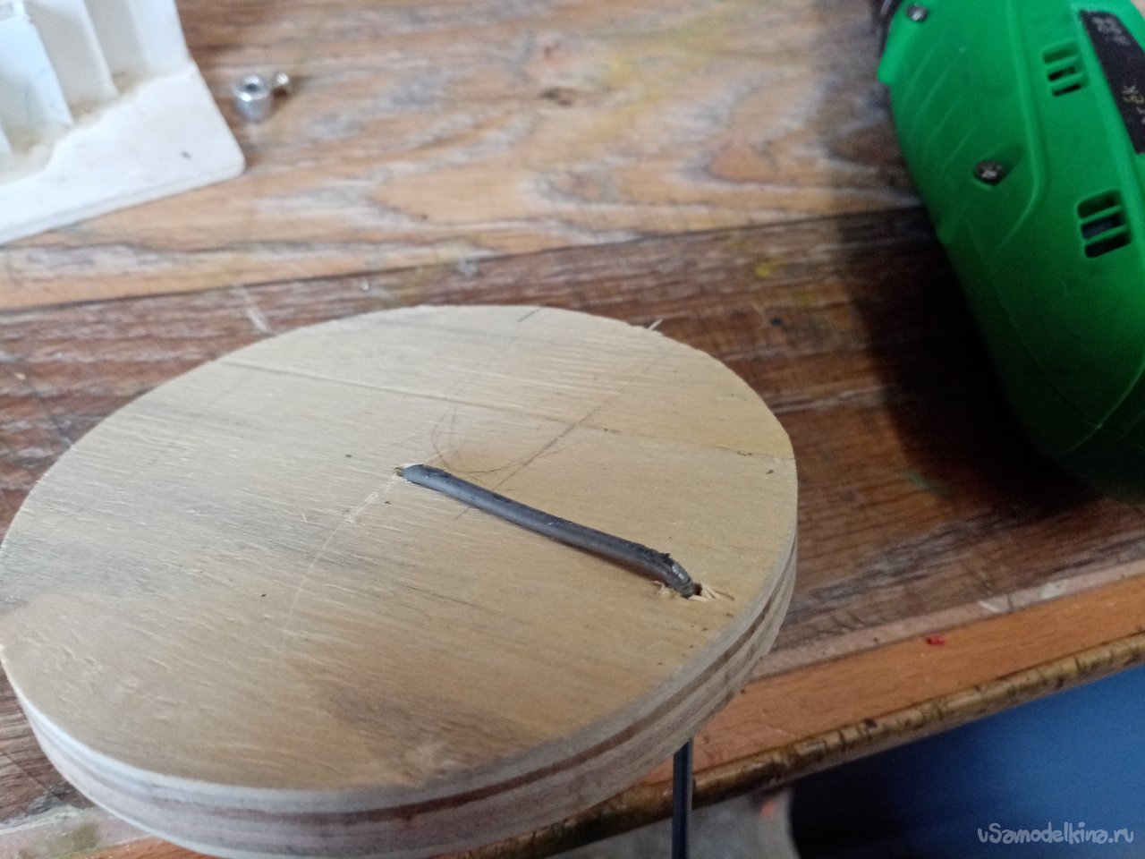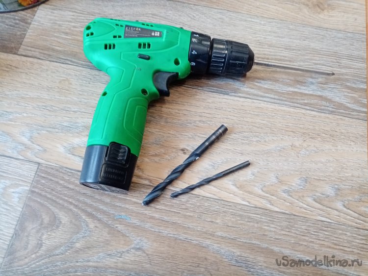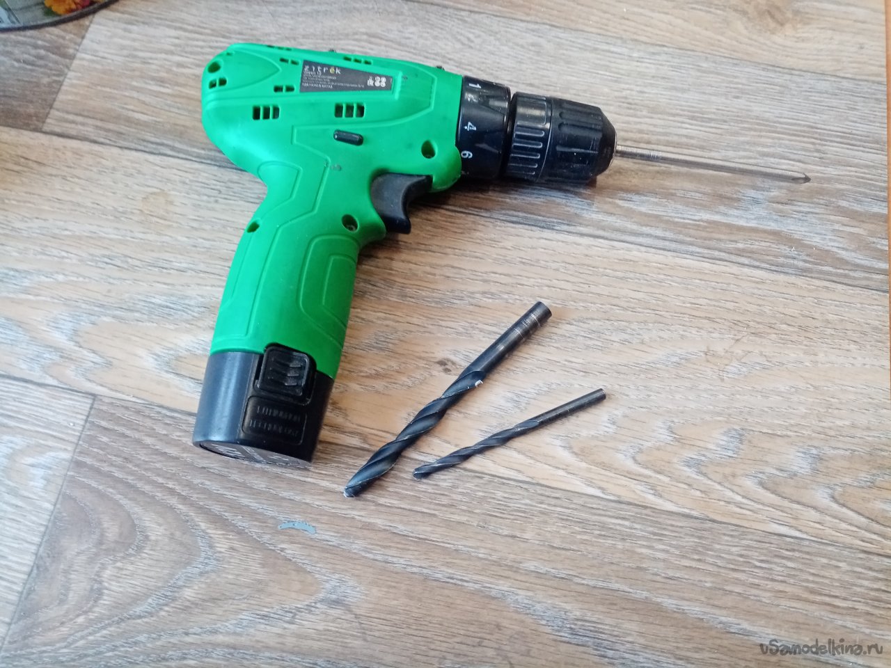 Промеряю диметр поволоки и подбираю сверло нужного диаметра. Сверлю отверстия в фанере.