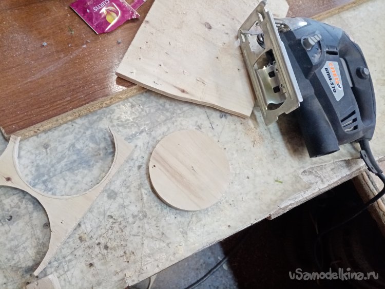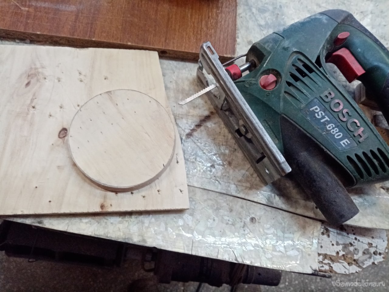 На электрическом аппарате поправляю скос пилы в 90 градусов. Готов кружочек.