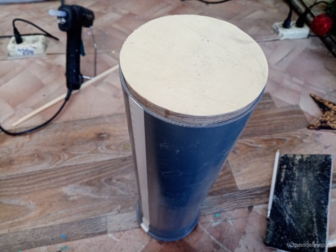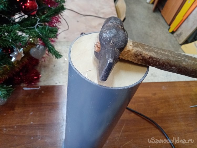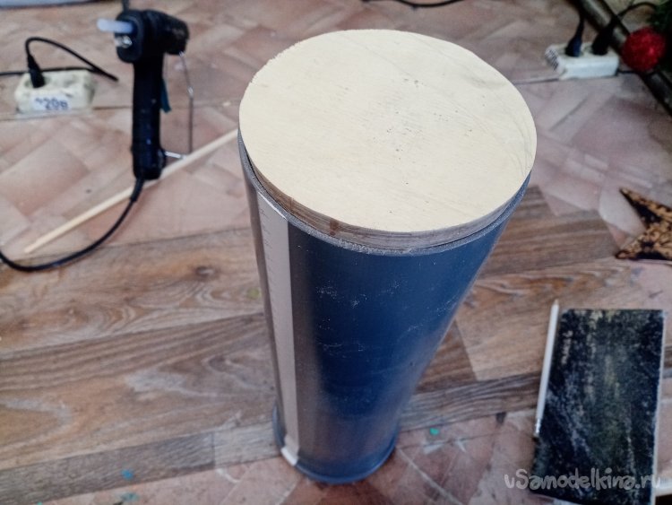 И по конусности все в нужном градусе получилось. Устанавливаю дно на срез трубы и «слегка постукивая кувалдой» поправляю фокус на объективе.