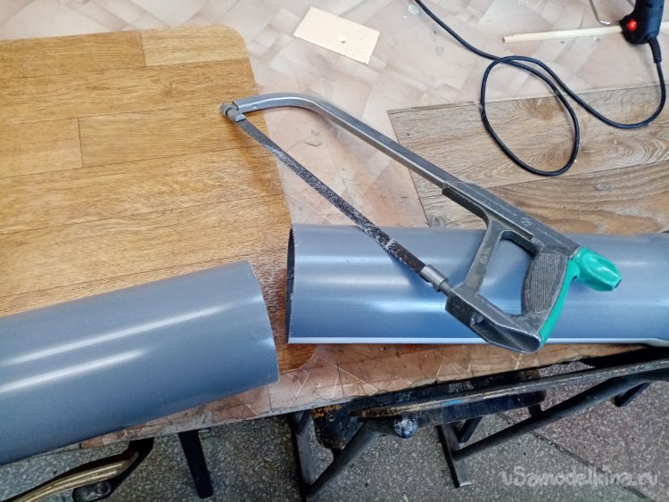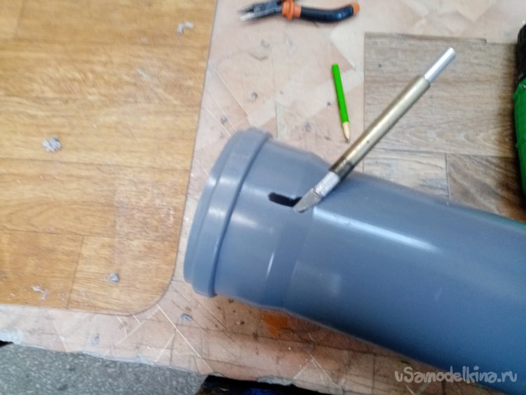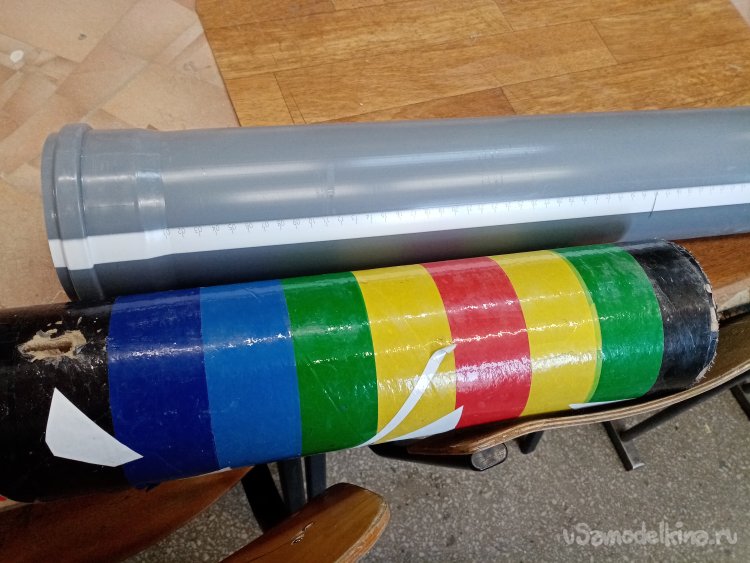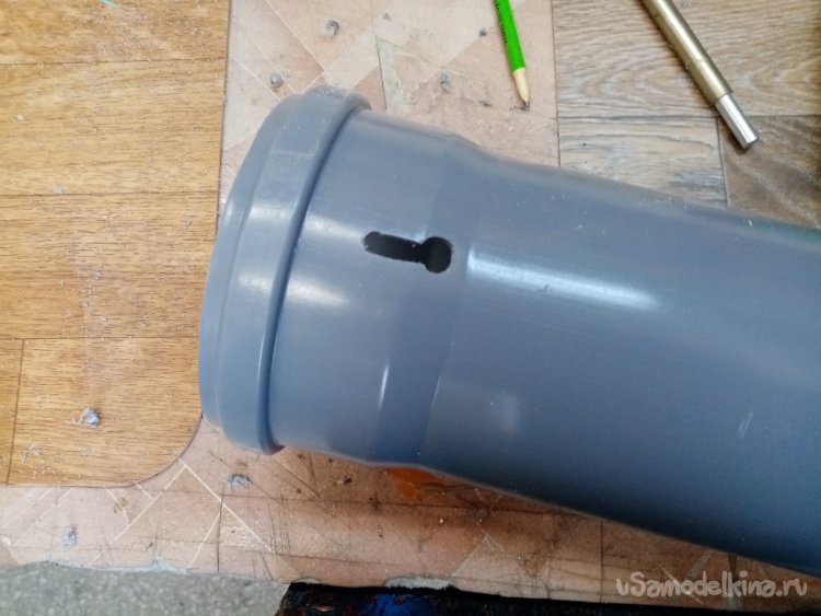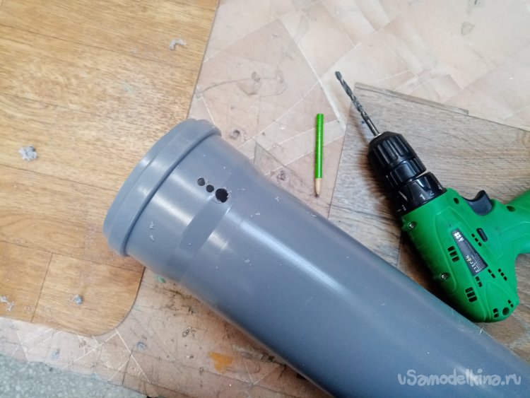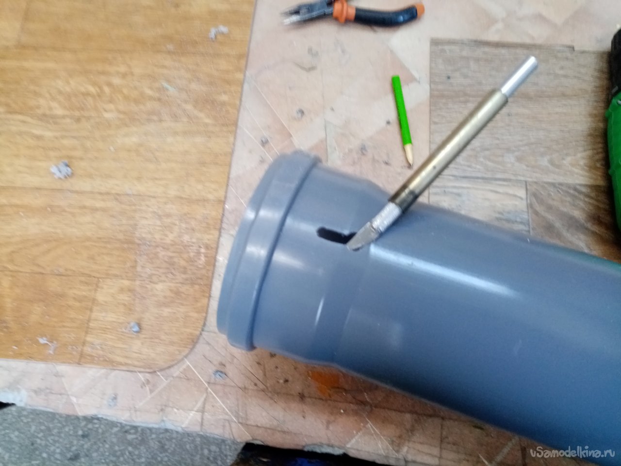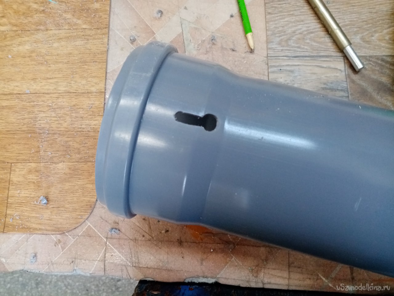 Размерчик думаю, оставить прежний. Проверенный временем. Приложив старый вариант, к пластиковой трубе отмеряю нужные сантиметры карандашом.