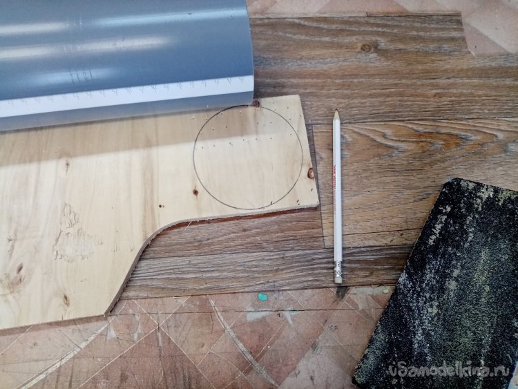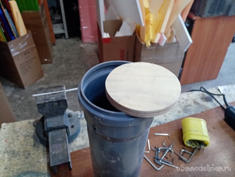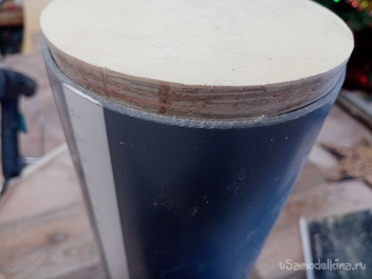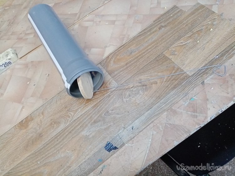 Установив трубу, вертикально обвожу карандашом по внешнему контуру. Заготовка днища готова.