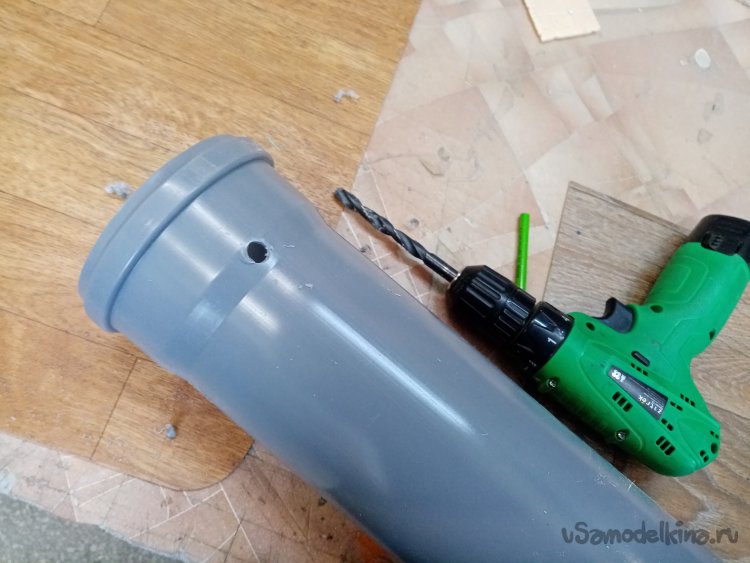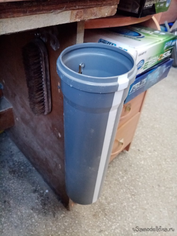 Как всегда решение не затянулось, в результате ремонта осталась пластиковая труба достаточного диаметра. Вот из нее и сделаю новую мусорницу в экстрактором содержимого.