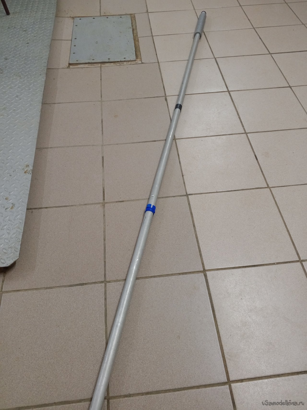На торговой площадке заказал пластиковые грабли шириной 600 мм. Так же в хозяйстве имелась трехметровая дюралевая труба на 32, я ее использую, как древко у флага, по случаю, на мероприятиях. Теперь, в зимнее время, труба будет черенком, для снегоуборщика.