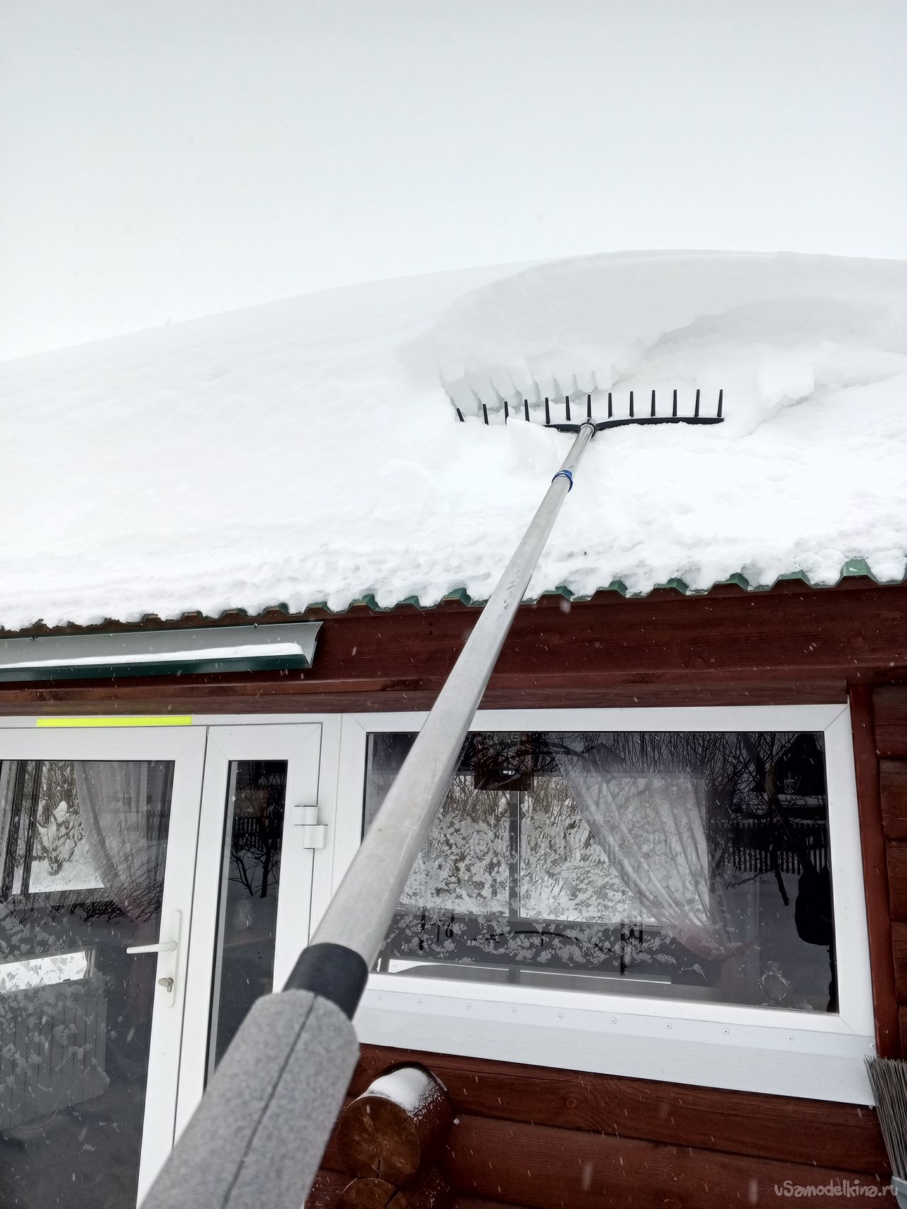 Очень удобно стягивать, сталкивать снежную массу, а где-то и наст небольшой на высоте пробить зубьями. Конструкция легкая, шубка на ручке пригодилась, длинна черенка позволяет работать и наискосок, и далеко вперед, а куски снега падают, но уже не на Вас.
