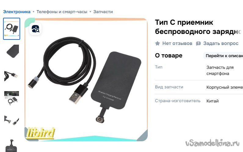 Переходим к практике. Сначала надо к смартфону прикрутить возможность работы с Qi-зарядкой. На Озоне нашлось много нужных устройств по самым разным ценам, я же решил сделать проект максимально универсальным, чтобы в случае, если что-то пойдёт не так, оставить возможность зарядки и по проводу тоже. Другими словами, мне нужен был приёмник (ресивер, так он называется на Озоне) с проходным разъёмом тайп си. То есть вставляем его в гнездо зарядки, и у него снаружи тоже есть гнездо для зарядки. К сожалению, такого нет в природе, но после кропотливых поисков я нашёл-таки проходной ресивер, но с магнитной зарядкой. Выбора большого не было, пришлось купить этот. Кстати, тоже прикольная вещь магнитная зарядка. Не надо тревожить родное гнездо, вставляешь в него пипку с «магниткой», с ней в комплекте обычно провод USB, на другом конце питающий магнитный коннектор. Видимо, магнит неодимовый, очень мощный, вблизи смартфона он сам ищет своего собрата и примагничивается ровно в то положение, чтобы заряжать телефон. После этого проекта я накупил себе таких несколько штук и раскидал по всей квартире, и в машину тоже. После Qi-зарядки, на мой взгляд, это самый крутой способ зарядки. Кроме того, пипка в телефоне защищает зарядное гнездо от пыли и становится сложно его сломать.