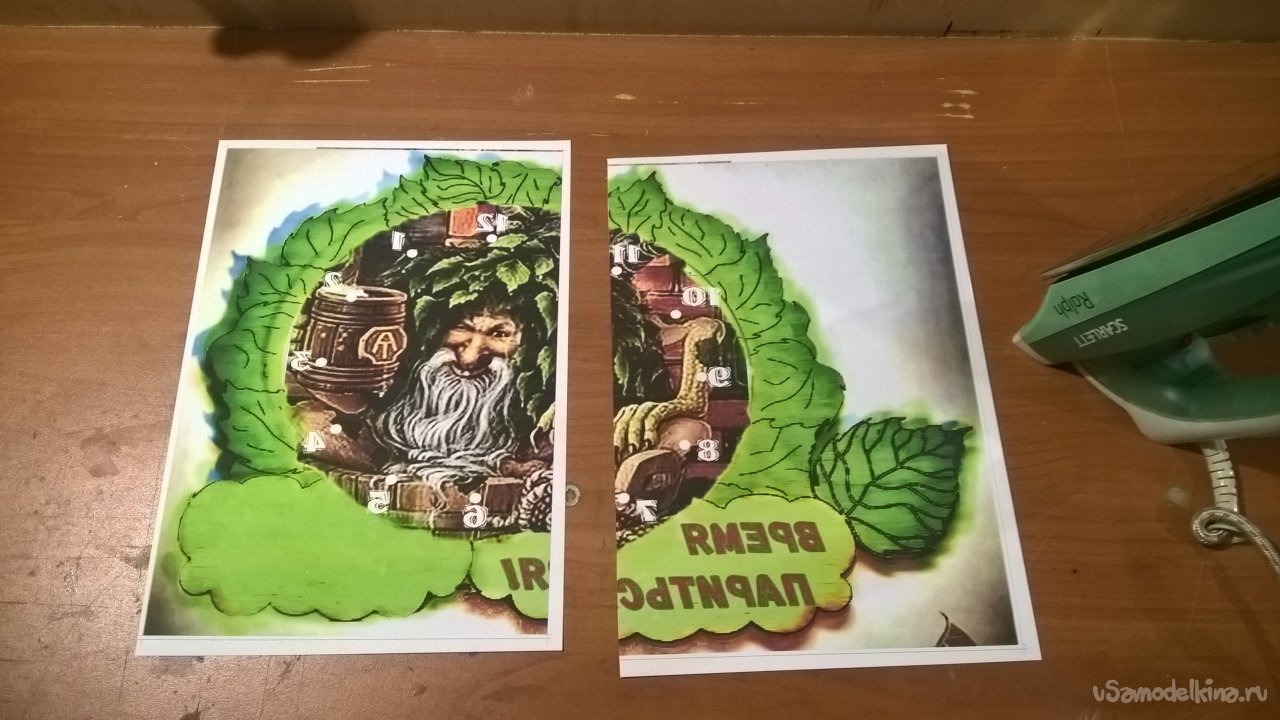 - Печать и настройка. Изображение было зеркально развёрнуто (важнейший момент, о котором многие забывают!) и распечатано на принтере на специальной термотрансферной бумаге. Здесь я сразу сделал для себя открытие: качество переноса напрямую зависит от насыщенности и контрастности исходной картинки — принтер должен «положить» много тонера.