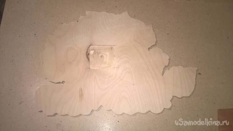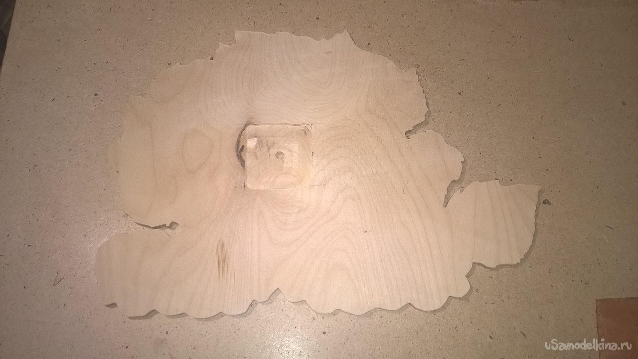 - Выпиливание формы. Электролобзик по нанесённому контуру — это медитативный процесс. Важно было вести линию ровно, сохраняя плавность изгибов «прожилок» листа. После выпиливания торцы были снова обработаны шлифовальной губкой, чтобы убрать малейшие шероховатости.
