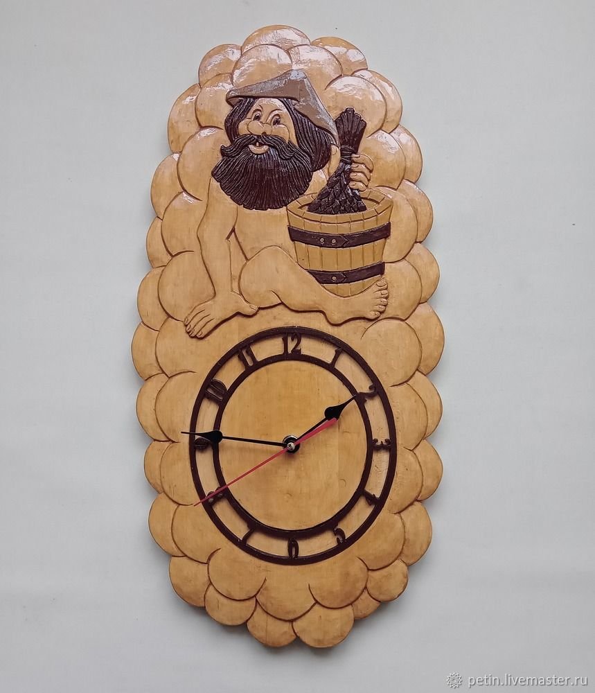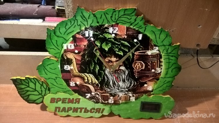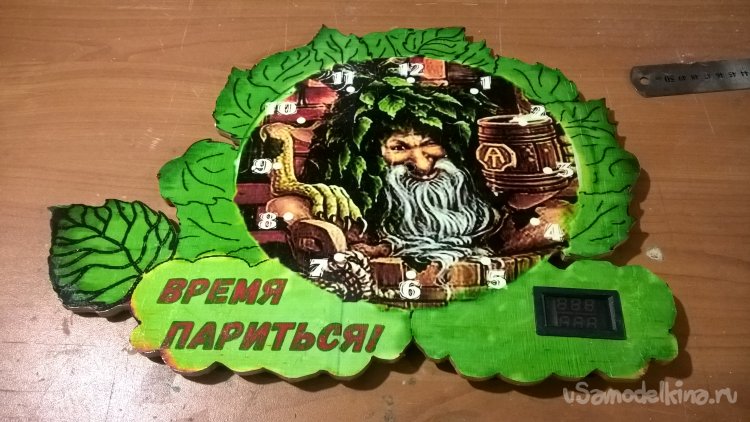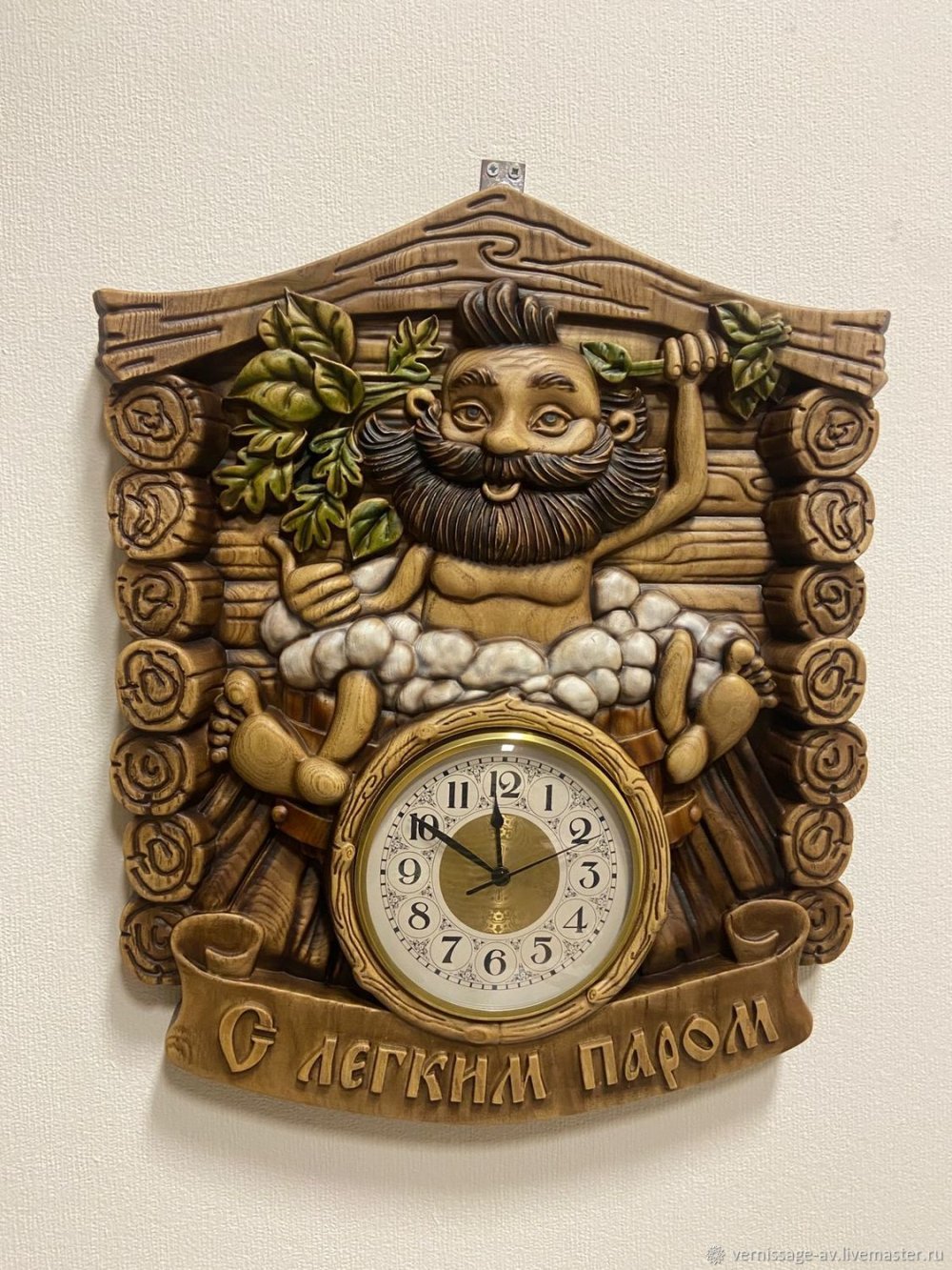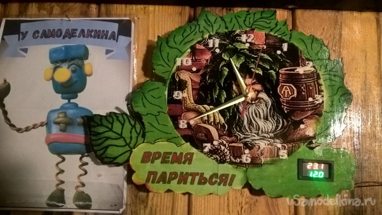 Функциональность идеально вписана в декор: время читается идеально, а температура в окошке — это не игрушка, а реальный помощник для банщика.