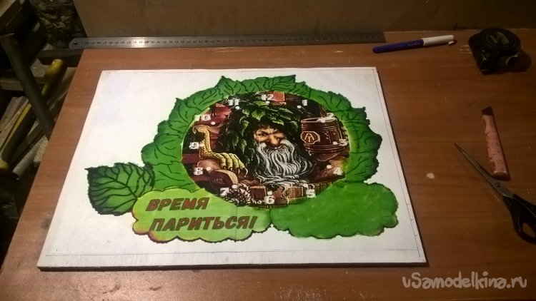 - Защита и долговечность. Баня — агрессивная среда: жар, пар, перепады влажности. Обычный лак здесь не подошёл бы. Я выбрал матный термостойкий лак на акриловой основе в три слоя. Он не пожелтеет от жары, создаст прочную плёнку, защищающую изображение, и сохранит приятную тактильную теплоту дерева.