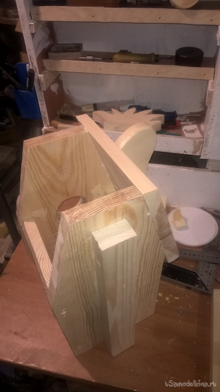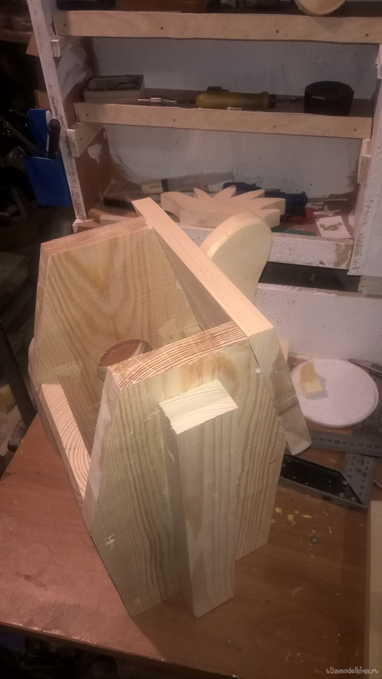 Вот где начался истинный полет фантазии! Все детали я сначала вырезал из плотного картона, чтобы понять пропорции и композицию. Потом эти шаблоны обводил на дереве.
