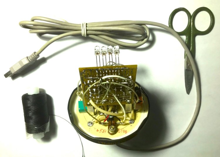 4). У устройства хоть и не ударопрочный, но практически бесплатный корпус – стеклянная банка из-под съеденного зелёного горошка.