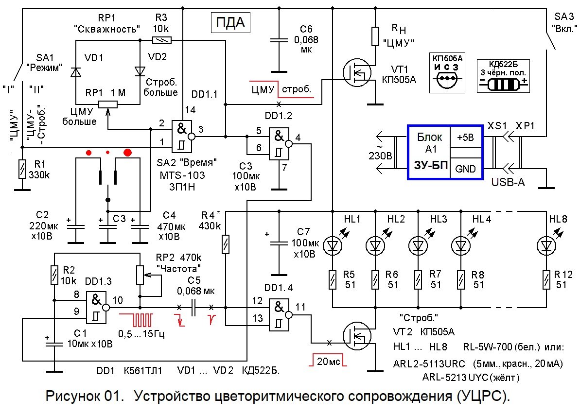 ЦМУ - цветомузыкальное устройство.