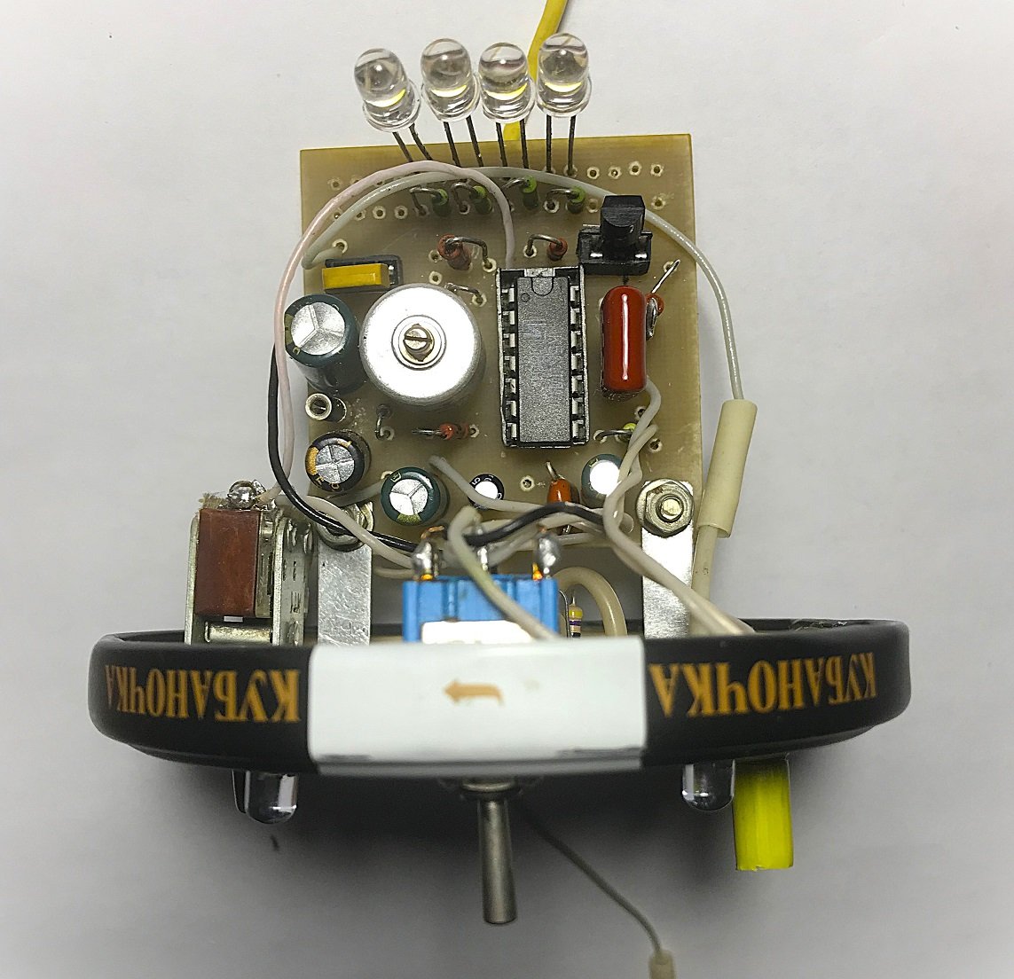 1). Поделка интересная и необычная. Я бы сказала «3 в одном»: ЦМУ, стробоскоп и управление режимами работы. И всего на одной ИМС К561ТЛ1.