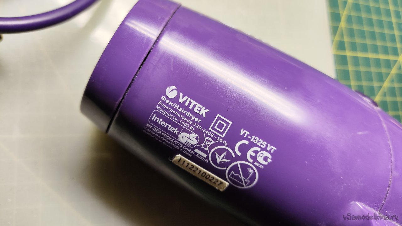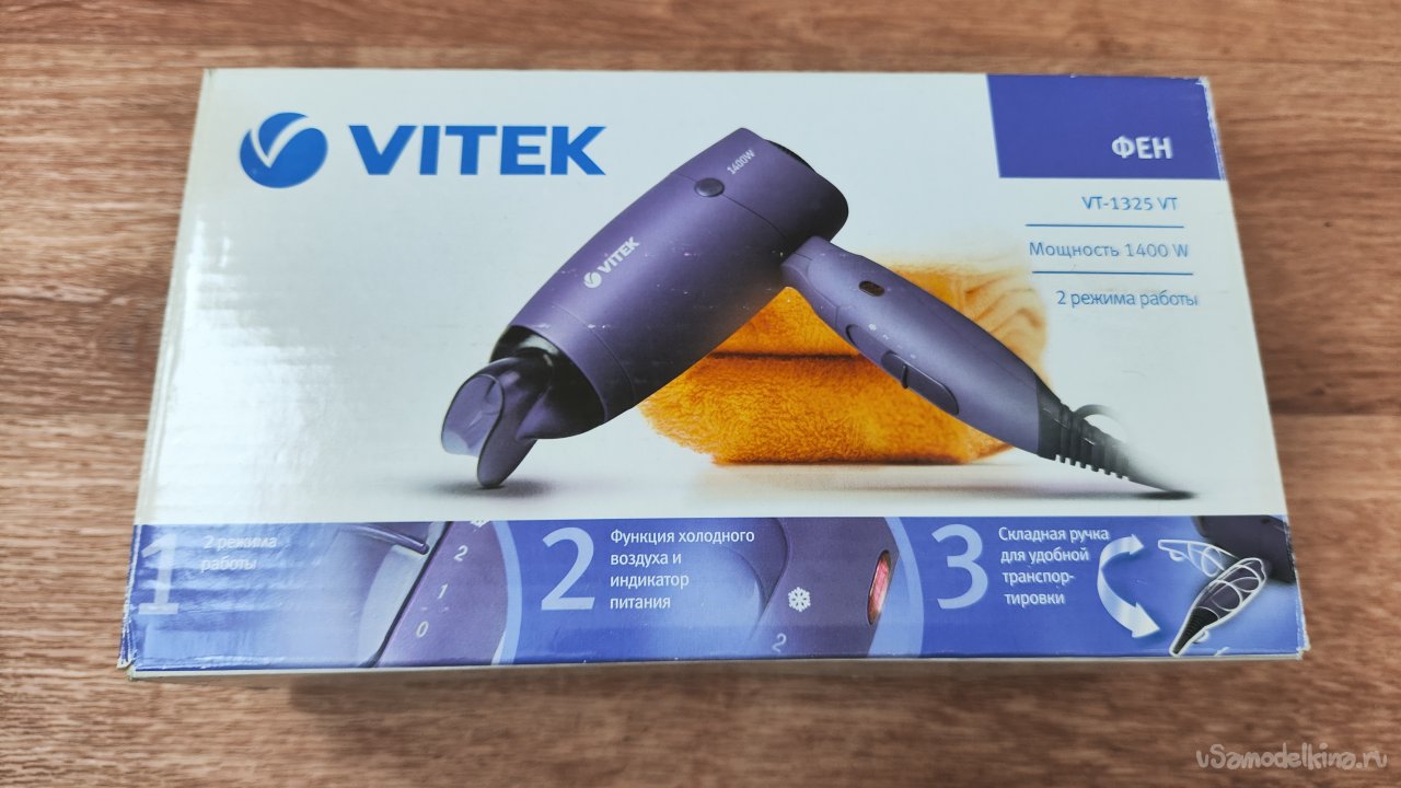 В домашнем пользовании имеется компактный фен для волос Vitek VT-1225 VT.