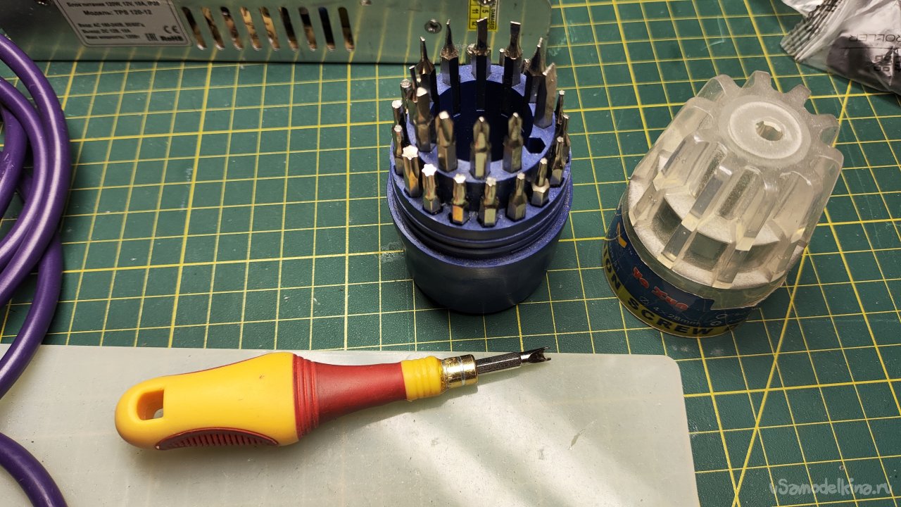 Такая бита есть в маленьком наборе отверток. Попробуем открутить.