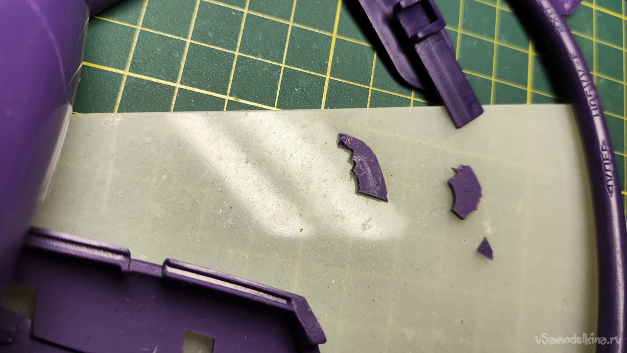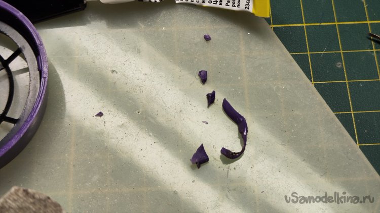 Мелкие кусочки отправил в мусорку. Хотя по-хорошему их тоже можно было приклеить, кроме того, что оплавился, но я не стал это делать.