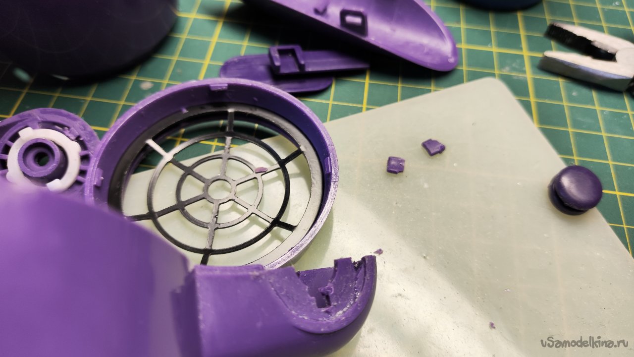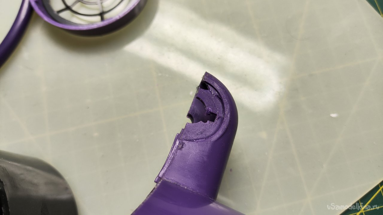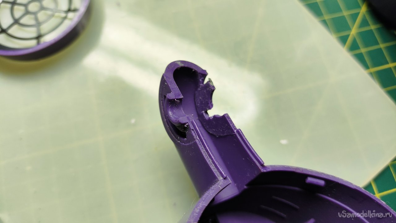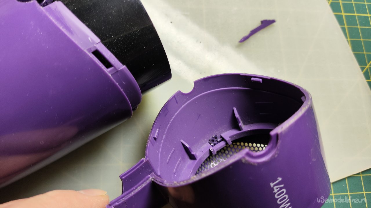 Легко снялась передняя решетка фена. Там тоже отколотый кусок пластика.