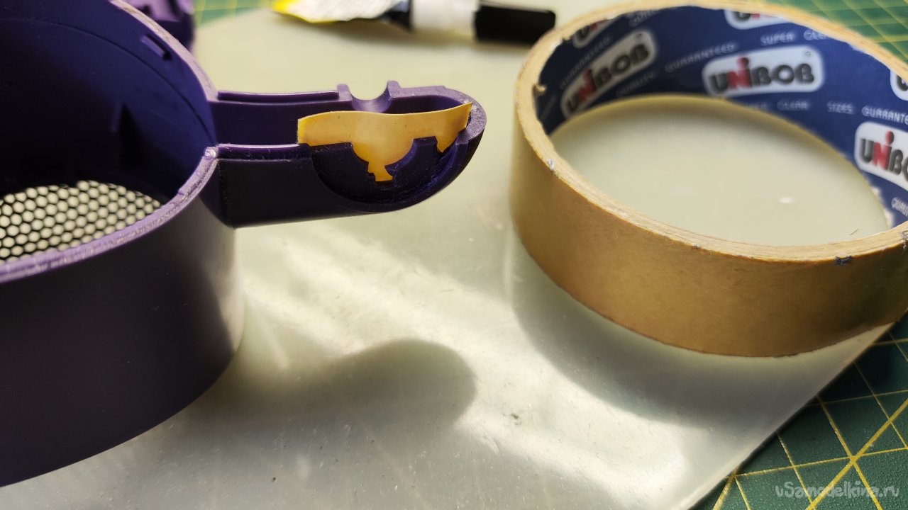 Хочу попробовать восстановить отсутствующие кусочки содой и цианоакрилатным клеем. Подготавливаю детали для заполнения, использую скотч, чтобы сократить расходы клей, так как мало его осталось. Много клея затвердело и его пришлось выбросить, а запасы давно не обновлялись.