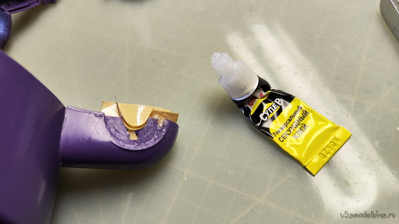 Найденные кусочки попробовал приклеить на место цианоакрилатным клеем. Вроде склеивается. Оставил клей сохнуть до утра.