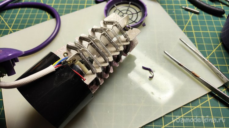 Снимаю со спирали пластиковый кожух и слюдяную термозащиту.