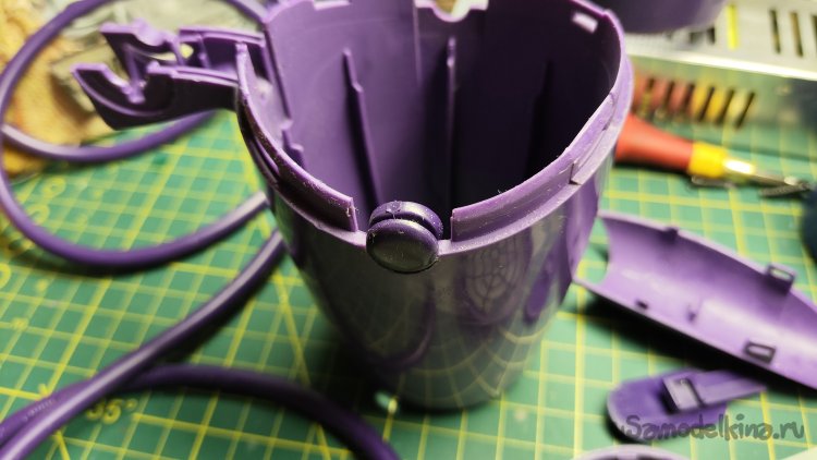 Половинки горячей части не хотят соединяться, липкое покрытие мешает. Смазал корпус тонким слоем технического вазелина. Вазелин наше все! Пошло лучше, но один из фиксаторов сломался. Похоже пластик действительно начал рассыпаться, гибкости ноль.